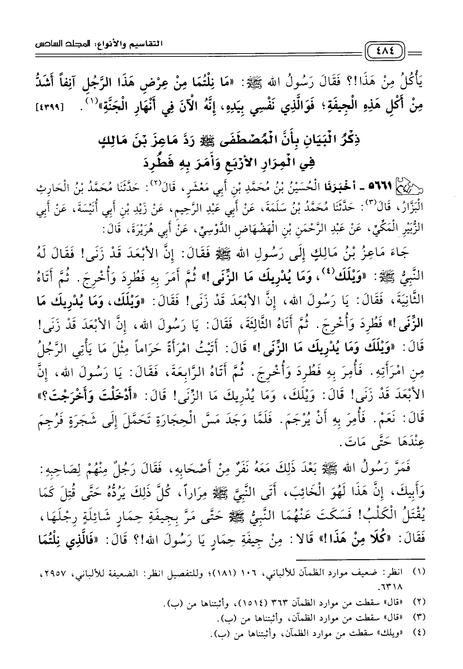 ذِكْرُ الْبَيَانِ بِأَنَّ الْمُصْطَفَى صَلى الله عَلَيه وسَلم رَدَّ مَاعِزَ بْنَ مَالِكٍ فِي الْمِرَارِ الأَرْبَعِ وَأَمَرَ بِهِ فَطُرِدَ.