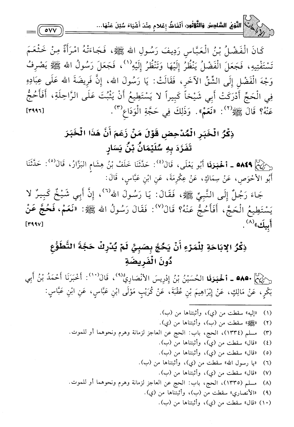 ٥٨٥٠ - أَخبَرنا الْحُسَيْنُ بْنُ إِدْرِيسَ الأنصاري، قَالَ: أَخبَرنا أَحْمَدُ بْنُ أَبِي بَكْرٍ، عَنْ مَالِكٍ، عَنْ إِبْرَاهِيمَ بْنِ عُقْبَةَ، عَنْ كُرَيْبٍ مَوْلَى ابْنِ عَبَّاسٍ، عَنِ ابْنِ عَبَّاسٍ، أَنَّ رَسُولَ اللهِ صَلى الله عَلَيه وسَلم مَرَّ بِامْرَأَةٍ، فَقِيلَ لَهَا: هَذَا رَسُولُ اللهِ صَلى الله عَلَيه وسَلم. فَأَخَذَتْ بِعَضُدِ صَبِيٍّ كَانَ مَعَهَا، فَقَالَتْ: أَلِهَذَا حَجٌّ يَا رَسُولَ اللهِ؟ فَقَالَ رَسُولُ اللهِ صَلى الله عَلَيه وسَلم: "نَعَمْ، وَلَكِ أَجْرٌ". [٣٧٩٧]