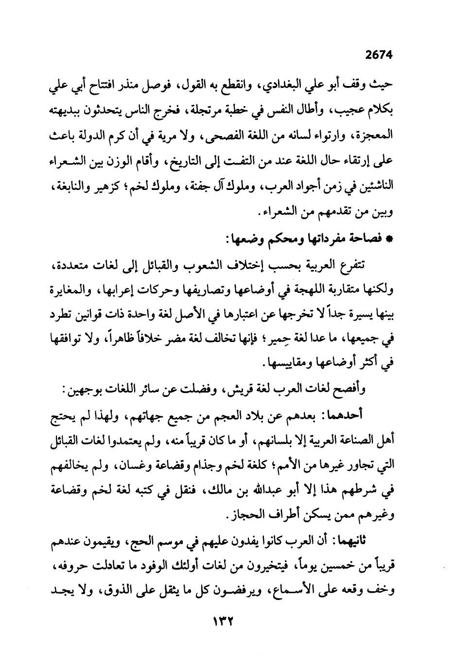 وأفصح لغات العرب لغة قريش، وفضلت عن سائر اللغات بوجهين: