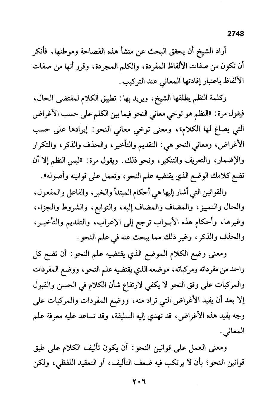 ومعنى العمل على قوانين النحو: أن يكون تأليف الكلام على طبق قوانين النحو؛ بأن لا يرتكب فيه ضعف التأليف، أو التعقيد اللفظي، ولكن