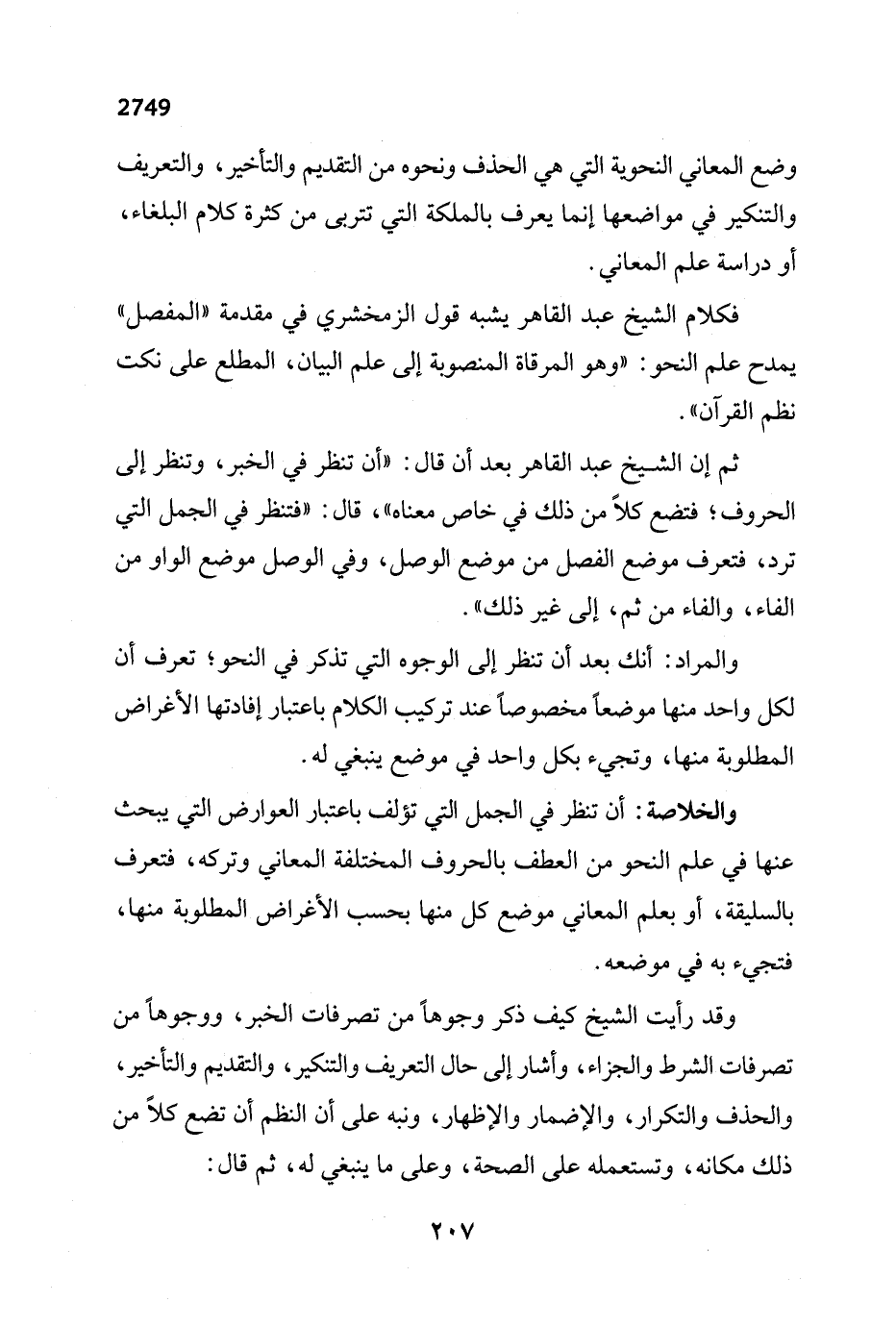 فكلام الشيخ عبد القاهر يشبه قول الزمخشري في مقدمة "المفصل" يمدح علم النحو: "وهو المرقاة المنصوبة إلى علم البيان، المطلع على نكت نظم القرآن".