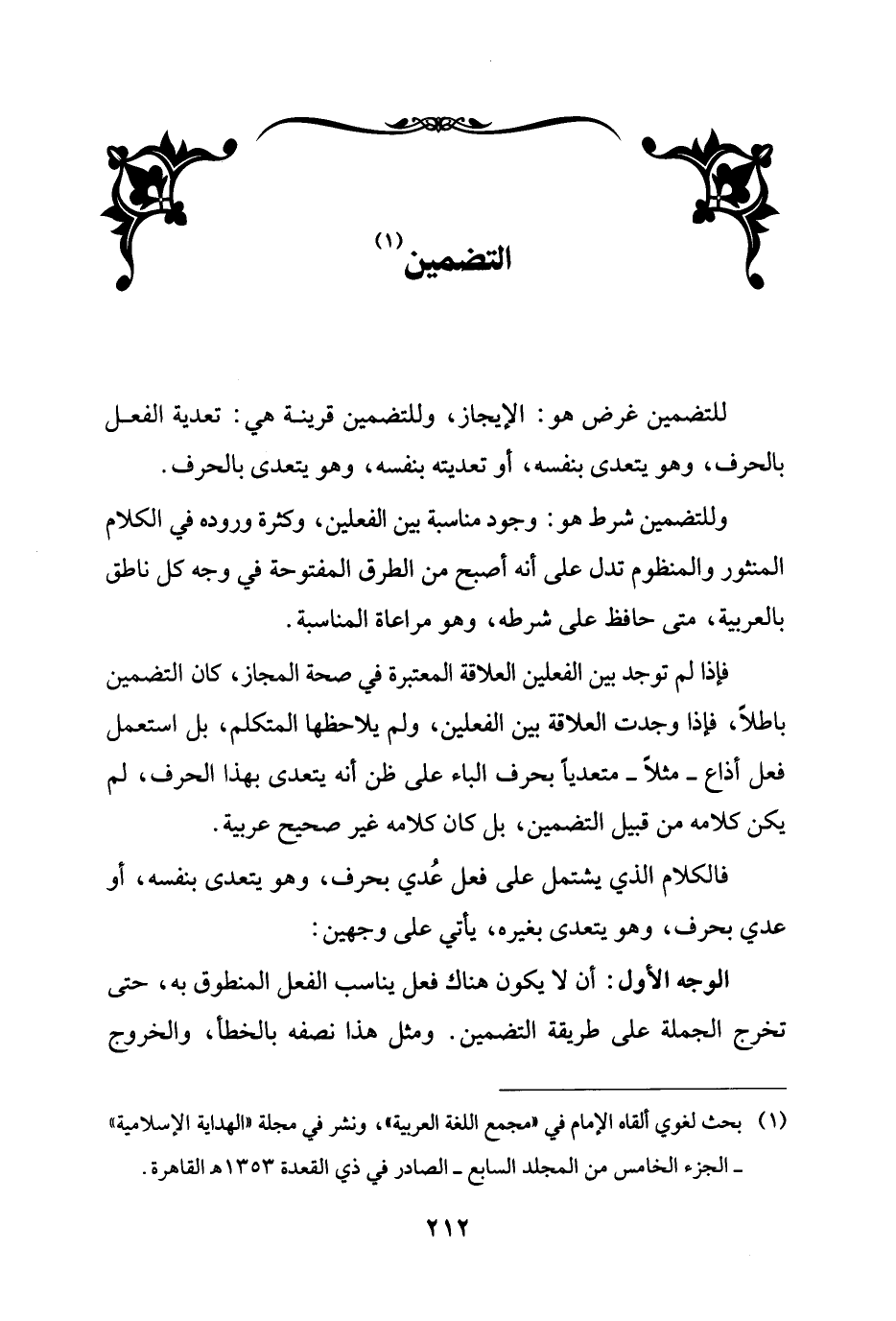 (¬1) بحث لغوي ألقاه الإمام في "مجمع اللغة العربية"، ونشر في مجلة "الهداية الإسلامية" - الجزء الخامس من المجلد السابع - الصادر في ذي القعدة 1353 هـ القاهرة.