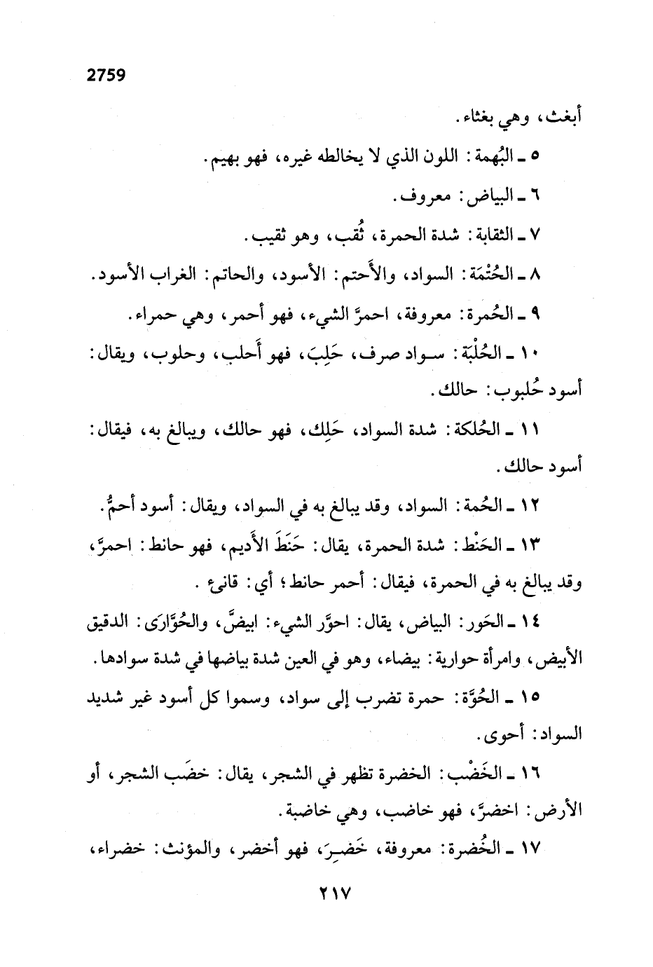 5 - البُهمة: اللون الذي لا يخالطه غيره، فهو بهيم.