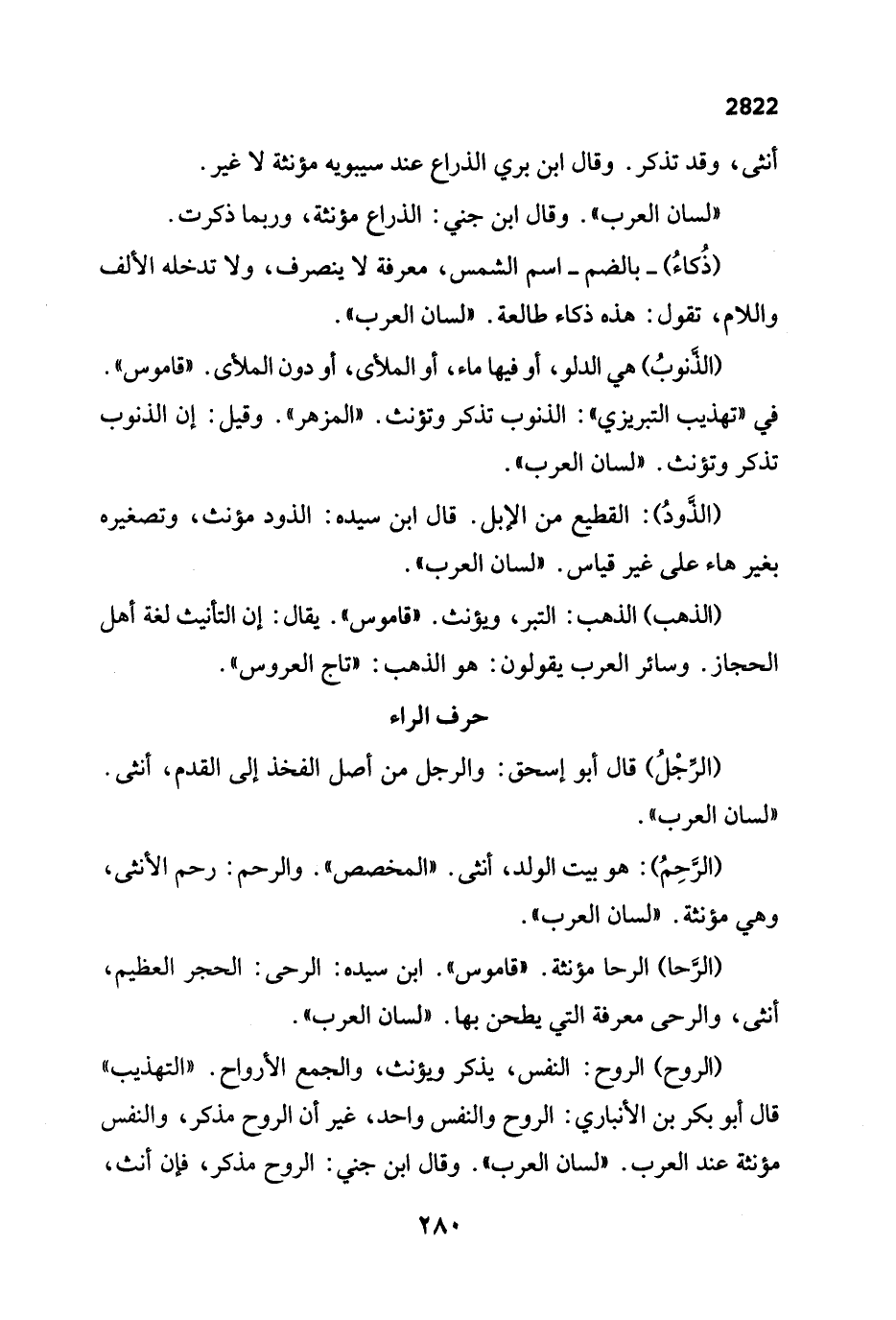 "لسان العرب". وقال ابن جني: الذراع مؤنثة، وربما ذكرت.