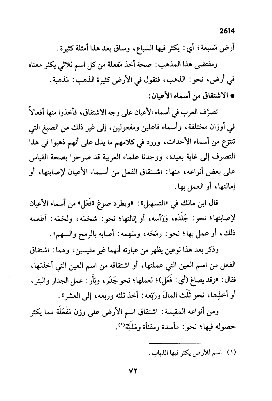 ومن أنواعه المقيسة: اشتقاق اسم الأرض على وزن مَفْعَلَة مما يكثر حصوله فيها؛ نحو: مأسدة ومقثأة ومَذَبَّة (¬1).