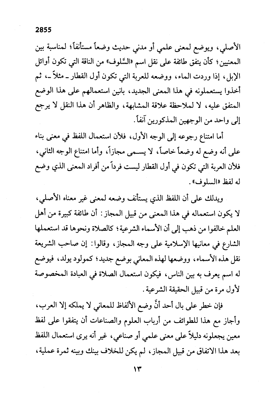 أما امتناع رجوعه إلى الوجه الأول، فلأن استعمال اللفظ في معنى بناء على أنه وضع له وضعاً خاصاً، لا يسمى مجازاً، وأما امتناع الوجه الثاني، فلأن العربة التي تكون في أول القطار ليست فردًا من أفراد المعنى الذي وضع له لفظ "السلوف".