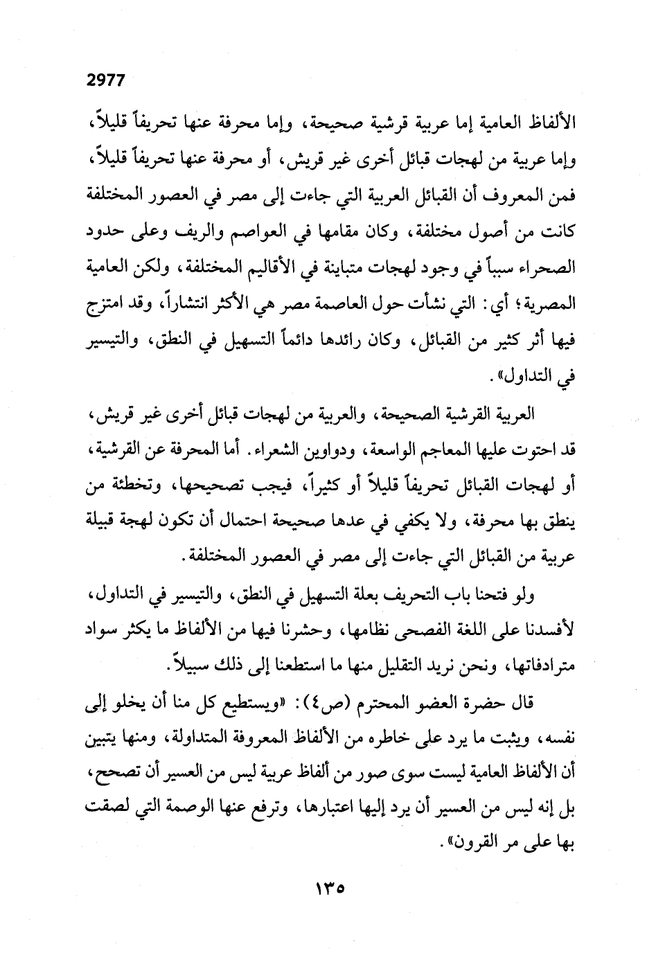 ولو فتحنا باب التحريف بعلة التسهيل في النطق، والتيسير في التداول، لأفسدنا على اللغة الفصحى نظامها، وحشرنا فيها من الألفاظ ما يكثر سواد مترادفاتها، ونحن نريد التقليل منها ما استطعنا إلى ذلك سبيلاً.
