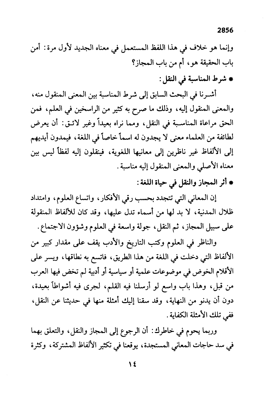 وربما يحوم في خاطرك: أن الرجوع إلى المجاز والنقل، والتعلق بهما في سد حاجات المعاني المستجدة، يوقعنا في تكثير الالمفاظ المشتركة، وكثرة