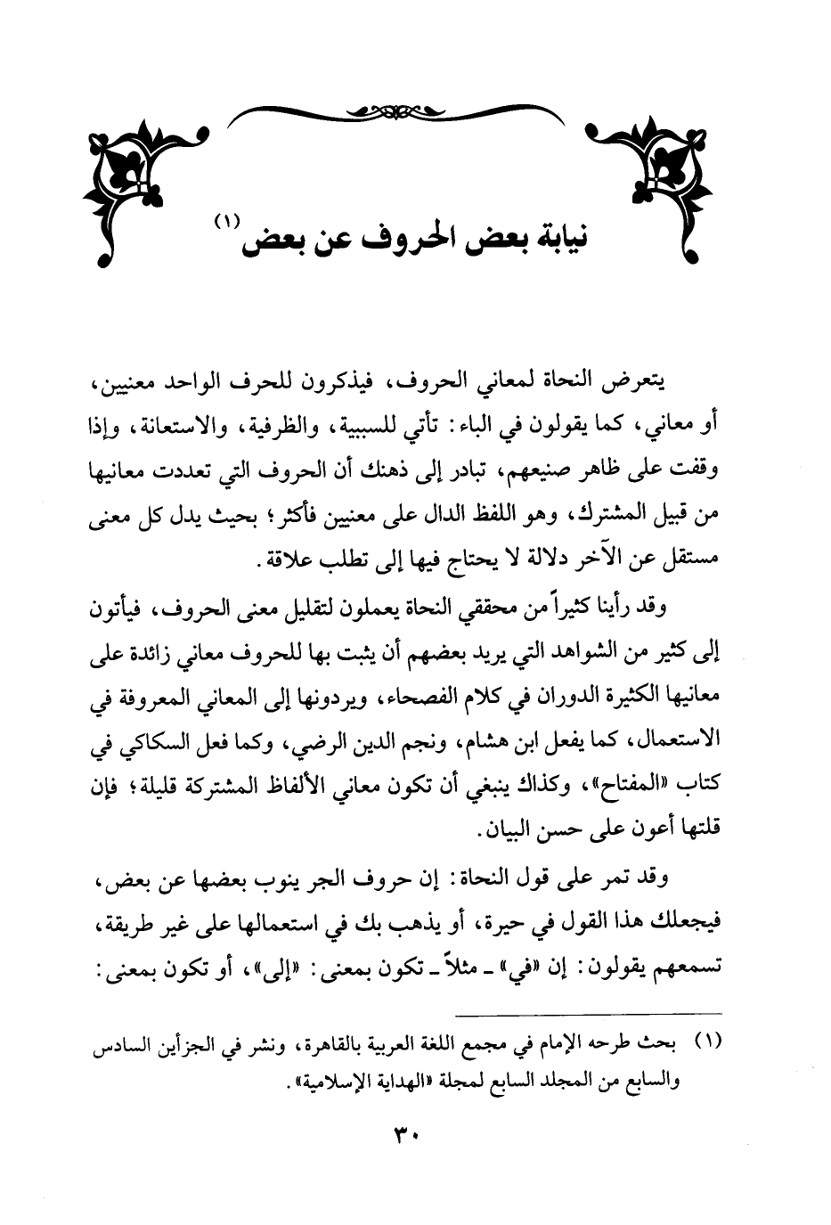 (¬1) بحث طرحه الإمام في مجمع اللغة العربية بالقاهرة، ونشر في الجزأين السادس والسابع من المجلد السابع لمجلة "الهداية الاسلامية".