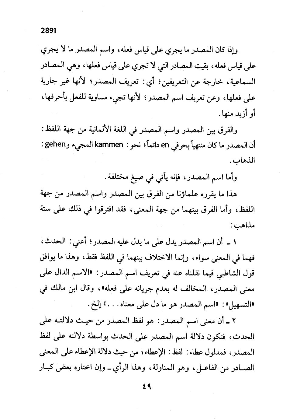 2 - أن معنى اسم المصدر: هو لفظ المصدر من حيث دلالته على الحدث، فتكون دلالة اسم المصدر على الحدث بواسطة دلالته على لفظ المصدر، فمدلول عطاء: لفظ: الإعطاء؛ من حيث دلالة الإعطاء على المعنى الصادر من الفاعل، وهو المناولة، وهذا الرأي - وإن اختاره بعض كبار