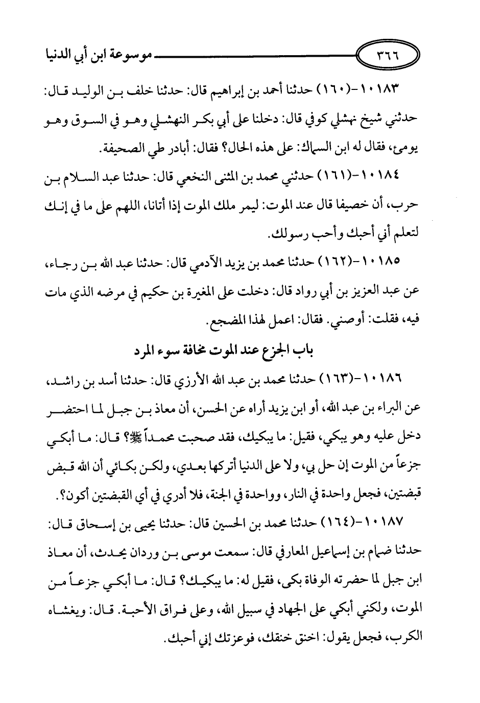 كتاب المحتضرين لابن أبي الدنيا - ط أطلس الخضراء = مقابل