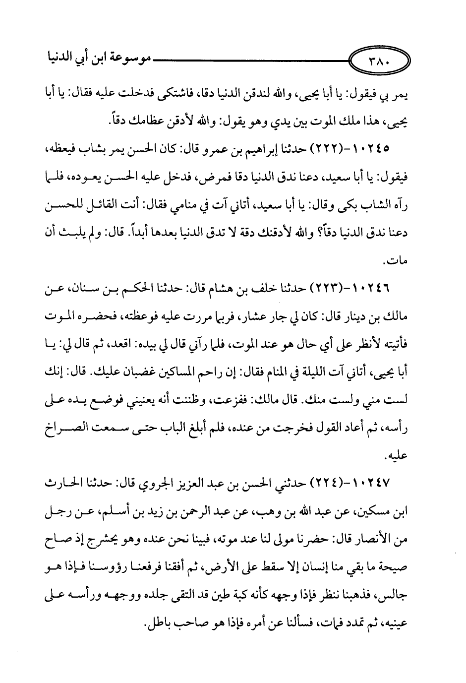 كتاب المحتضرين لابن أبي الدنيا - ط أطلس الخضراء = مقابل