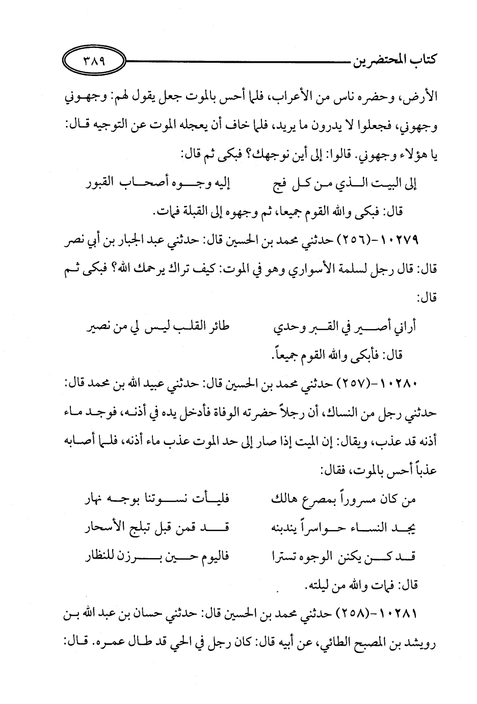 كتاب المحتضرين لابن أبي الدنيا - ط أطلس الخضراء = مقابل