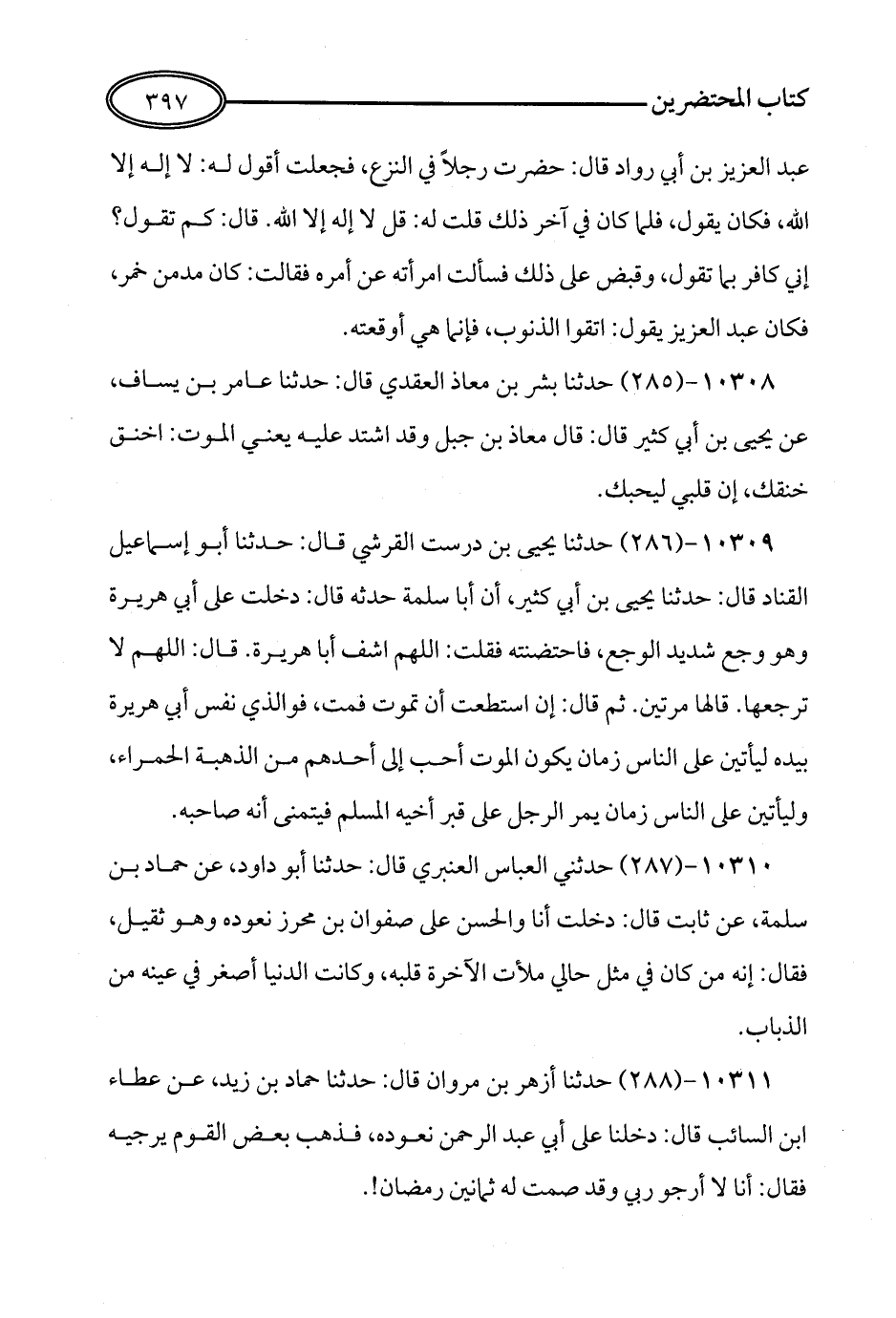 كتاب المحتضرين لابن أبي الدنيا - ط أطلس الخضراء = مقابل