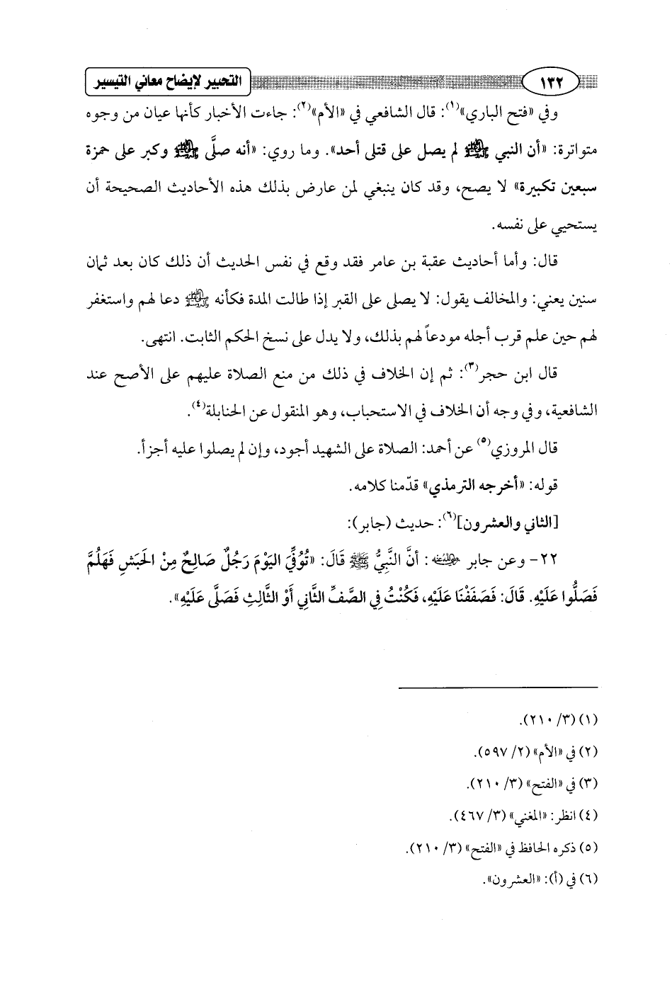 وفي "فتح الباري" (¬1): قال الشافعي في "الأم" (¬2): جاءت الأخبار كأنها عيان من وجوه متواترة: "أن النبي - صلى الله عليه وسلم - لم يصل على قتلى أحد". وما روي: "أنه صلَّى - صلى الله عليه وسلم - على حمزة سبعين تكبيرة" لا يصح، وقد كان ينبغي لمن عارض بذلك هذه الأحاديث الصحيحة أن يستحيي على نفسه.
