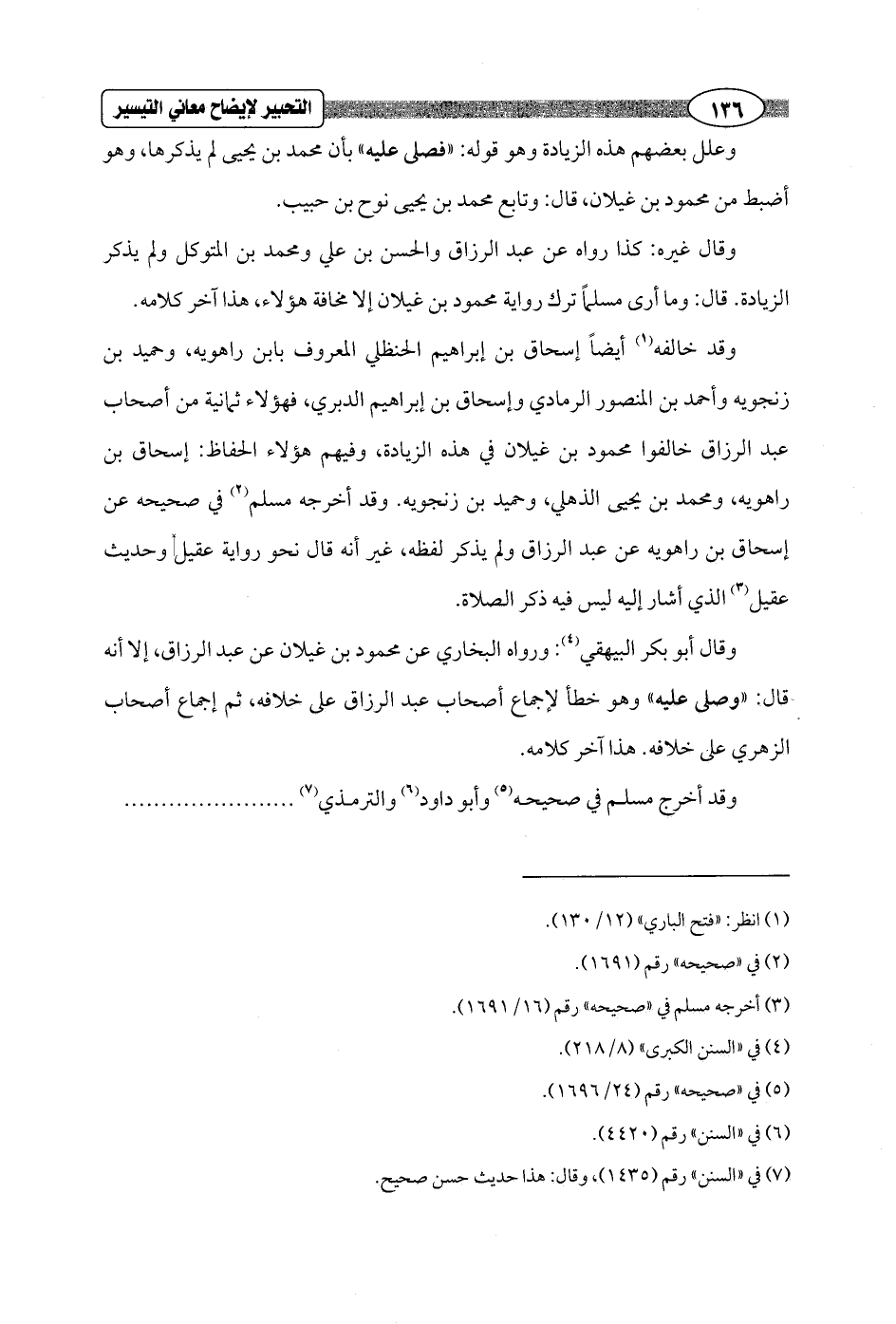 وقال غيره: كذا رواه عن عبد الرزاق والحسن بن علي ومحمد بن المتوكل ولم يذكر الزيادة. قال: وما أرى مسلماً ترك رواية محمود بن غيلان إلا مخافة هؤلاء، هذا آخر كلامه.