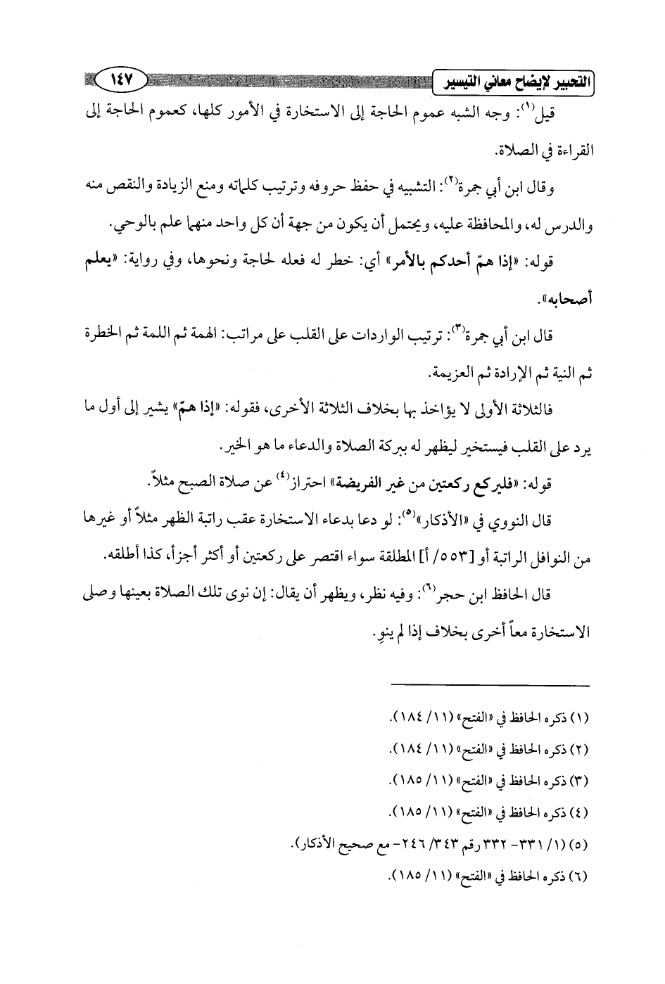 قال الحافظ ابن حجر (¬6): وفيه نظر، ويظهر أن يقال: إن نوى تلك الصلاة بعينها وصلى الاستخارة معاً أخرى بخلاف إذا لم ينوِ.