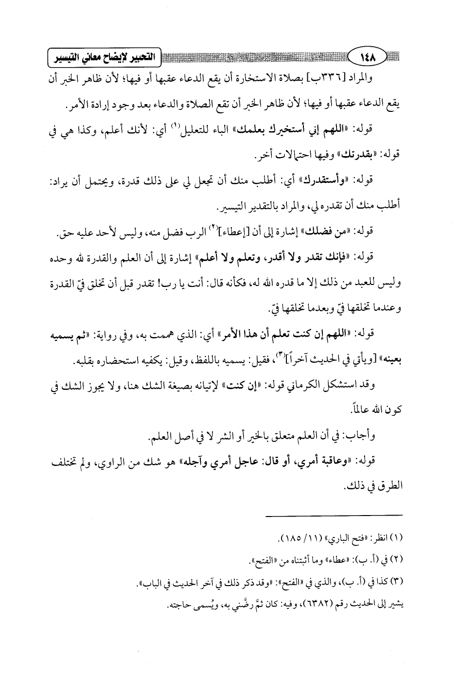 قوله: "اللهم إني أستخيرك بعلمك" الباء للتعليل (¬1) أي: لأنك أعلم، وكذا هي في قوله: "بقدرتك" وفيها احتمالات أخر.