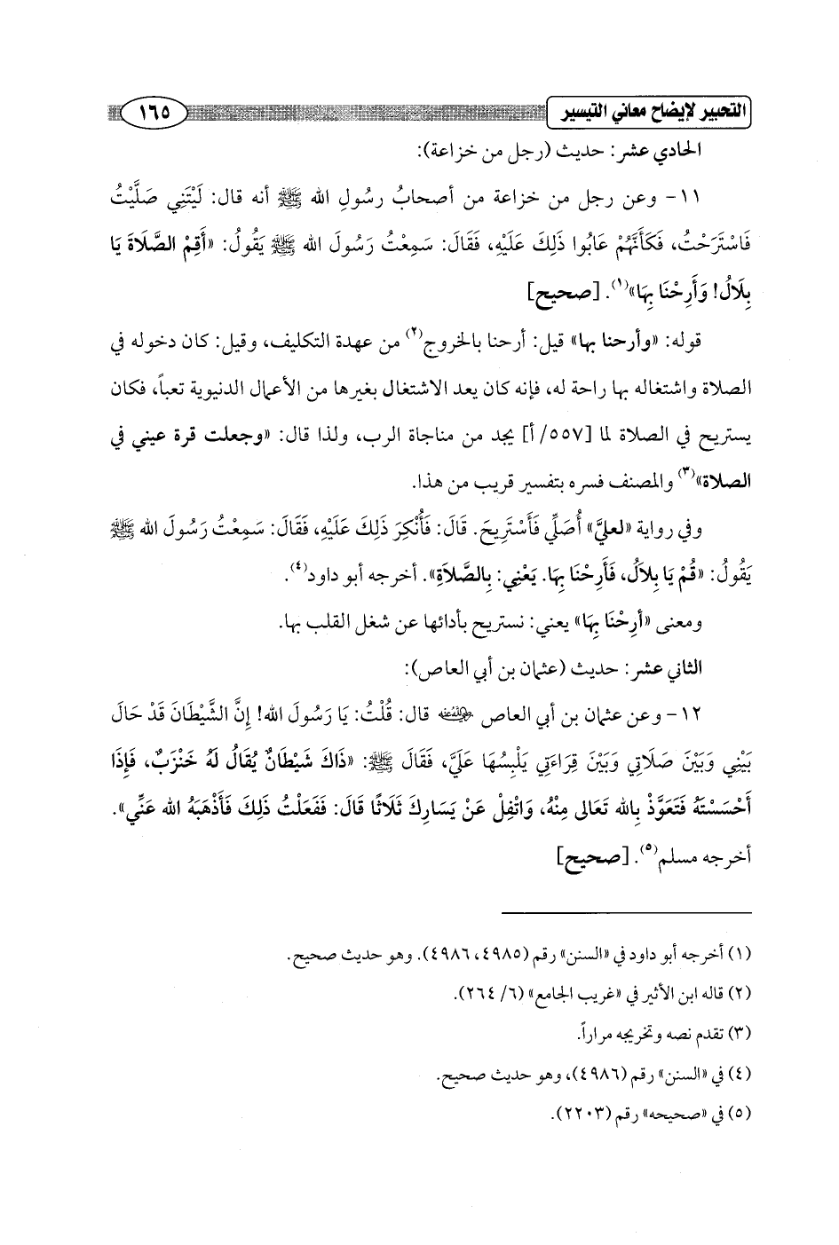1 - وعن رجل من خزاعة من أصحابُ رسُولِ الله - صلى الله عليه وسلم - أنه قال: لَيْتَنِي صَلَّيْتُ فَاسْتَرَحْتُ، فَكَأَنَّهُمْ عَابُوا ذَلِكَ عَلَيْهِ، فَقَالَ: سَمِعْتُ رَسُولَ الله - صلى الله عليه وسلم - يَقُولُ: "أَقِمْ الصَّلَاةَ يَا بِلَالُ! وَأَرِحْنَا بِهَا" (¬1). [صحيح]