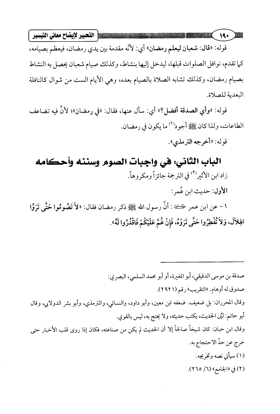 الباب الثاني: في واجبات الصوم وسننه وأحكامه