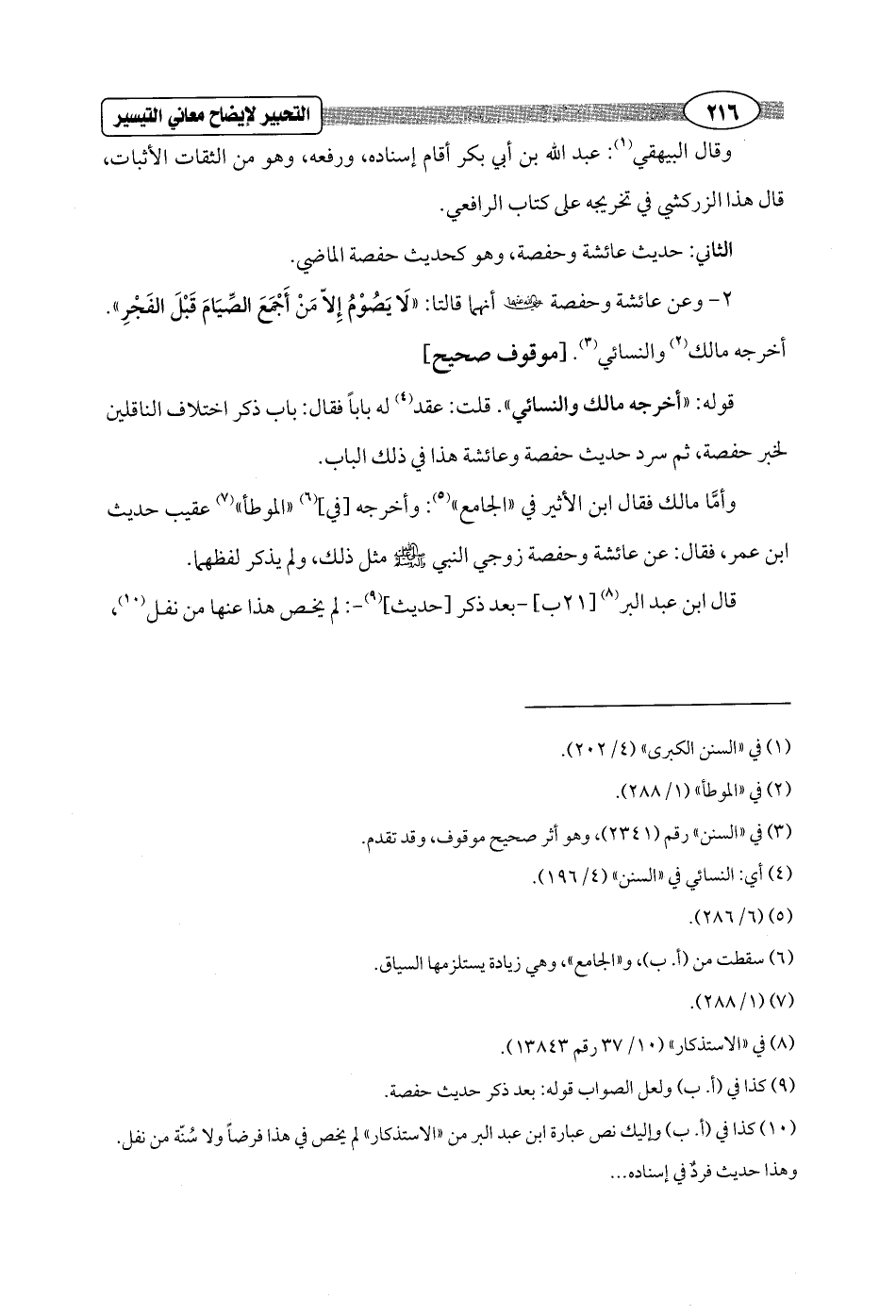 (¬9) كذا في (أ. ب) ولعل الصواب قوله: بعد ذكر حديث حفصة.