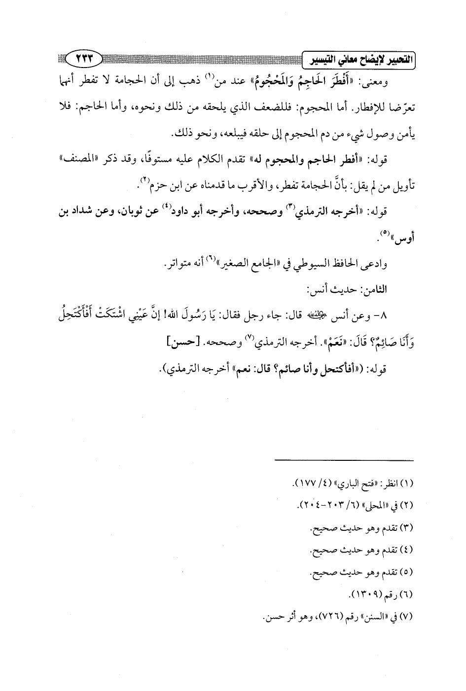 8 - وعن أنس - رضي الله عنه - قال: جاء رجل فقال: يَا رَسُولَ الله! إنَّ عَيْنِي اشْتَكَتْ أَفْأَكْتَحِلُ وَأَنَا صَائِمٌ؟ قَالَ: "نَعَمْ". أخرجه الترمذي (¬7) وصححه. [حسن]