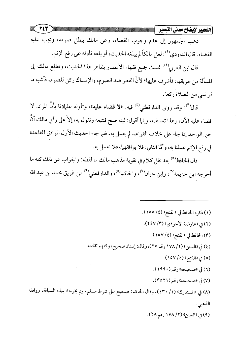 قال الحافظ (¬5) بعد نقل كلام في تقوية مذهب مالك ما لفظه: والجواب عن ذلك كله ما أخرجه ابن خزيمة (¬6)، وابن حبان (¬7)، والحاكم (¬8)، والدارقطني (¬9) من طريق محمد بن عبد الله