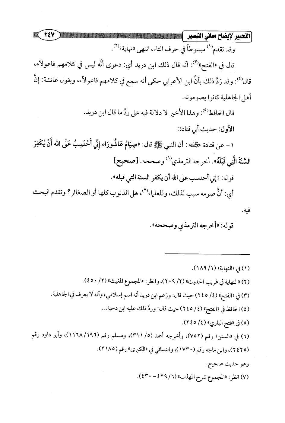 1 - عن قتادة - رضي الله عنه -: أن النبي - صلى الله عليه وسلم - قال: "صِيَامُ عَاشُورَاء إِنِّي أَحْتَسِبُ عَلَى الله أَنْ يُكَفِرَ السَّنَةَ الَّتِي قَبْلَهُ". أخرجه الترمذي (¬6) وصححه. [صحيح]