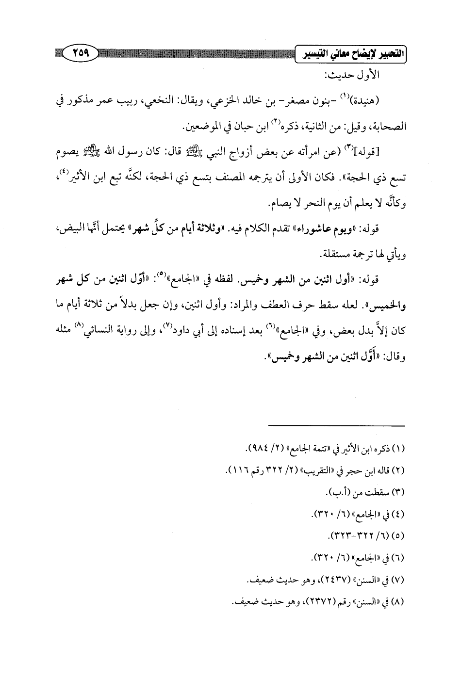 [قوله] (¬3) (عن امرأته عن بعض أزواج النبي - صلى الله عليه وسلم - قال: كان رسول الله - صلى الله عليه وسلم - يصوم تسع ذي الحجة". فكان الأولى أن يترجمه المصنف بتسع ذي الحجة، لكنَّه تبع ابن الأثير (¬4)، وكأنَّه لا يعلم أن يوم النحر لا يصام.