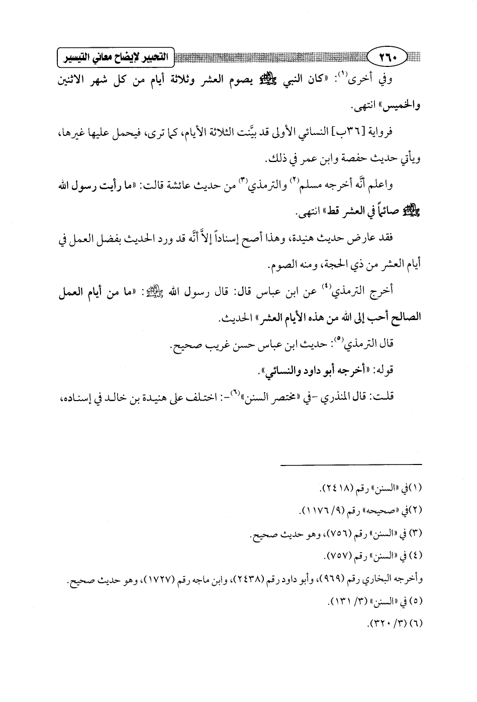 فرواية [36 ب] النسائي الأولى قد بيَّنت الثلاثة الأيام، كما ترى، فيحمل عليها غيرها، ويأتي حديث حفصة وابن عمر في ذلك.