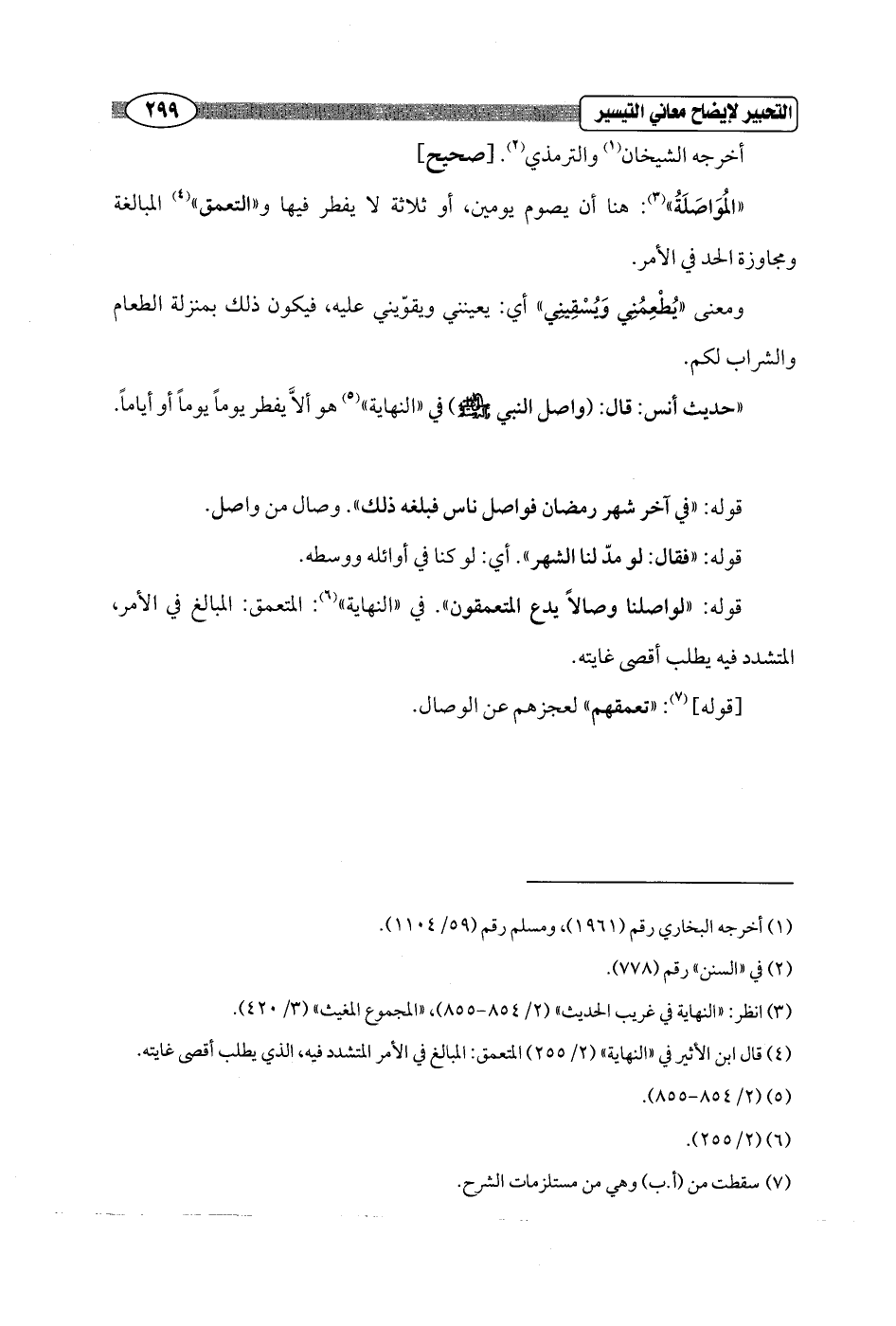 "حديث أنس: قال: (واصل النبي - صلى الله عليه وسلم -) في "النهاية" (¬5) هو ألاَّ يفطر يوماً يوماً أو أياماً.