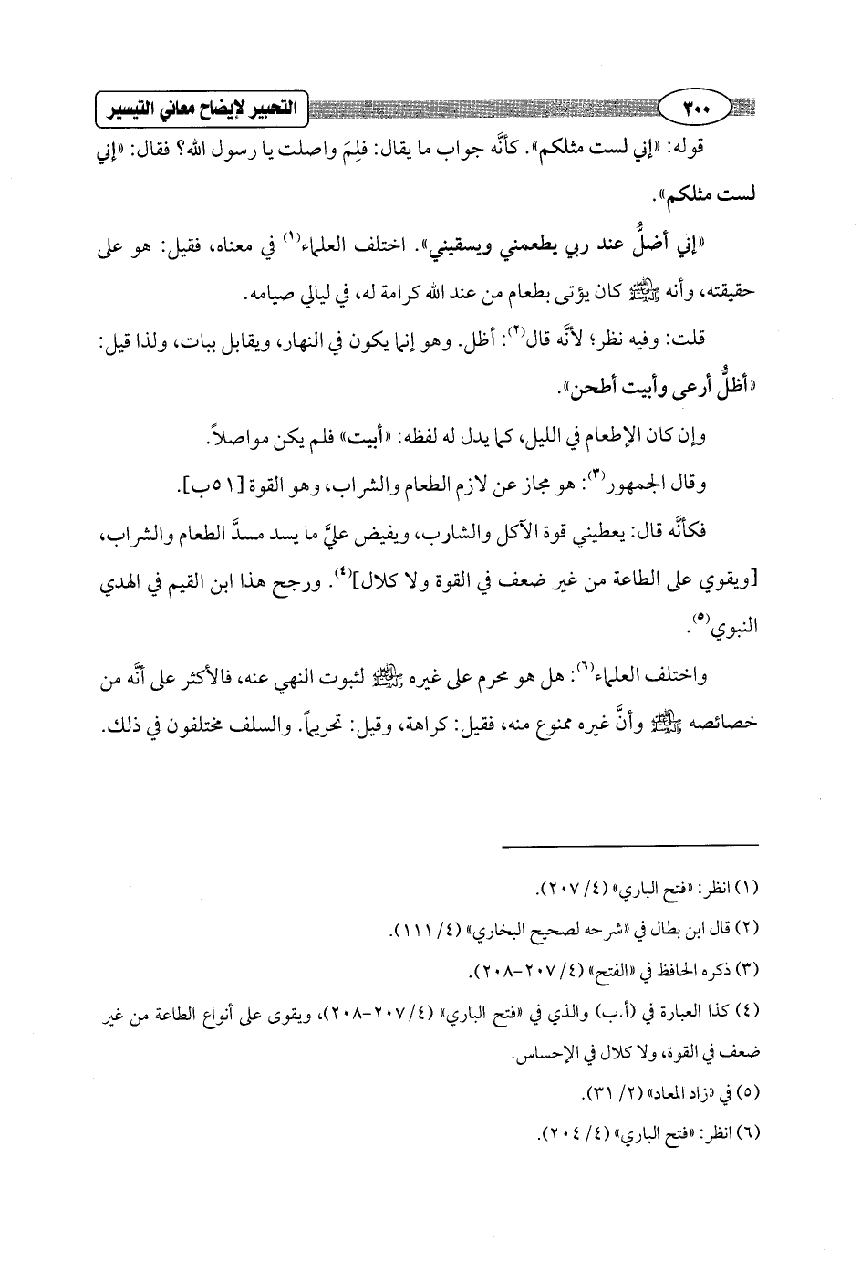 فكأنَّه قال: يعطيني قوة الآكل والشارب، ويفيض عليَّ ما يسد مسدَّ الطعام والشراب، [ويقوي على الطاعة من غير ضعف في القوة ولا كلال] (¬4). ورجح هذا ابن القيم في الهدي النبوي (¬5).