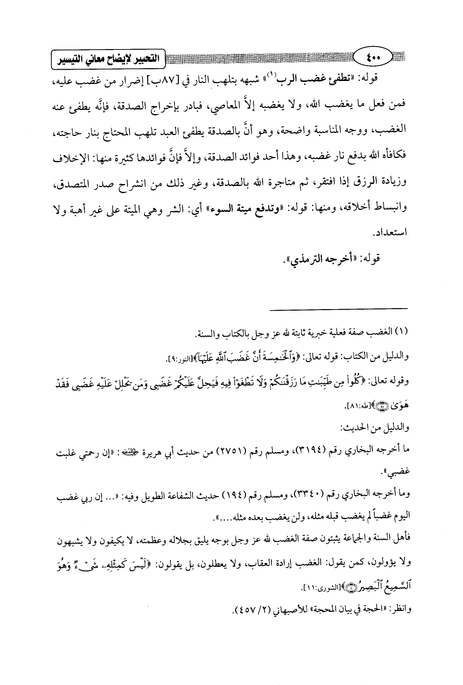 (¬1) الغضب صفة فعلية خبرية ثابتة لله عز وجل بالكتاب والسنة.
