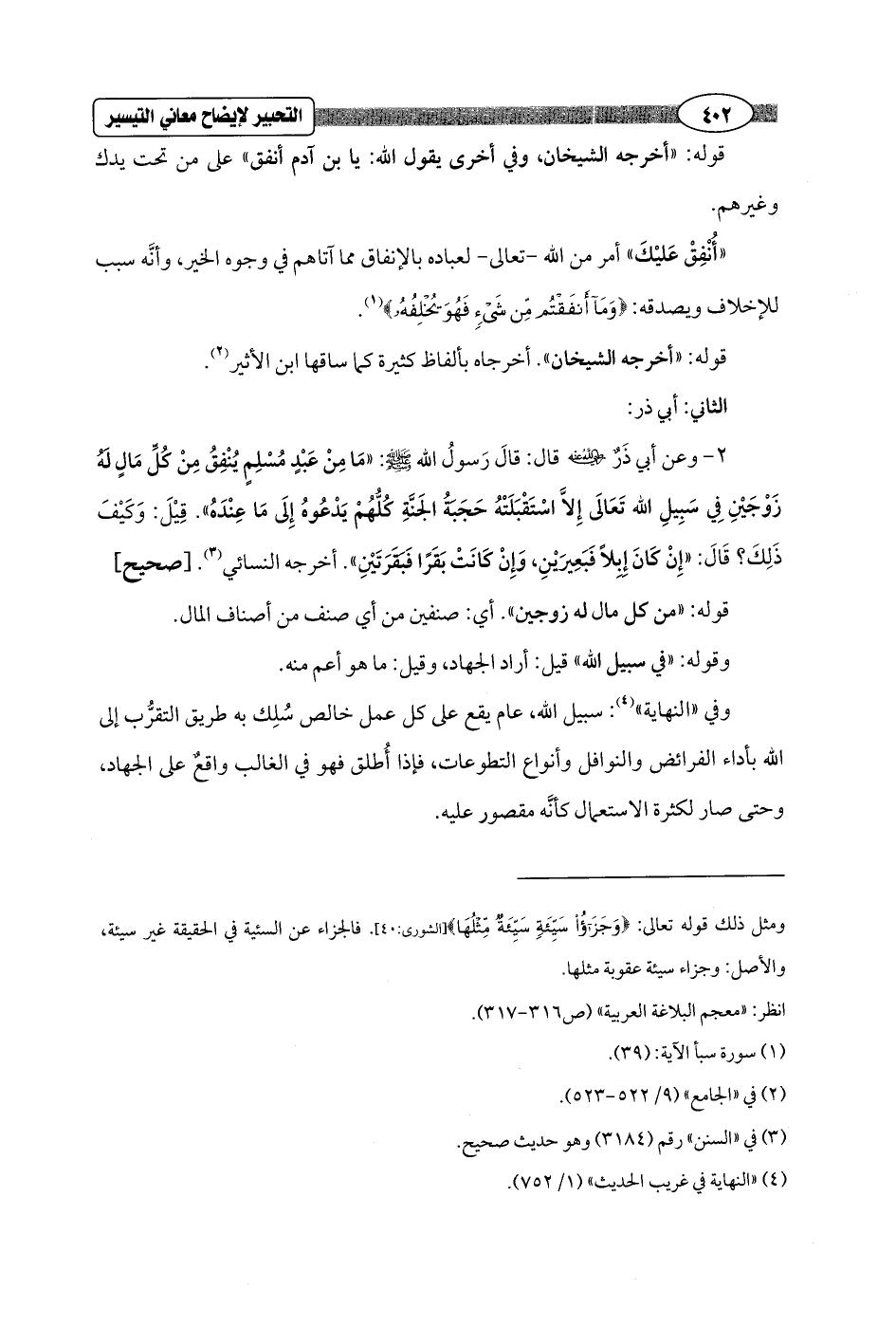 وفي "النهاية" (¬4): سبيل الله، عام يقع على كل عمل خالص سُلِك به طريق التقرُّب إلى الله بأداء الفرائض والنوافل وأنواع التطوعات، فإذا أُطلق فهو في الغالب واقعٌ على الجهاد، وحتى صار لكثرة الاستعمال كأنَّه مقصور عليه.