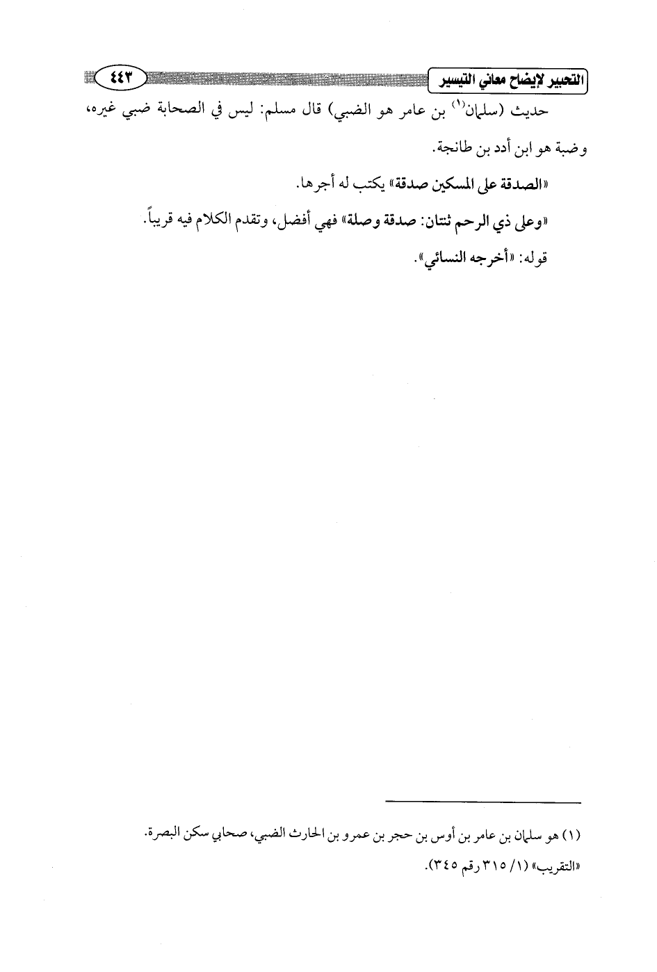 (¬1) هو سلمان بن عامر بن أوس بن حجر بن عمرو بن الحارث الضبي، صحابي سكن البصرة. "التقريب" (1/ 315 رقم 345).