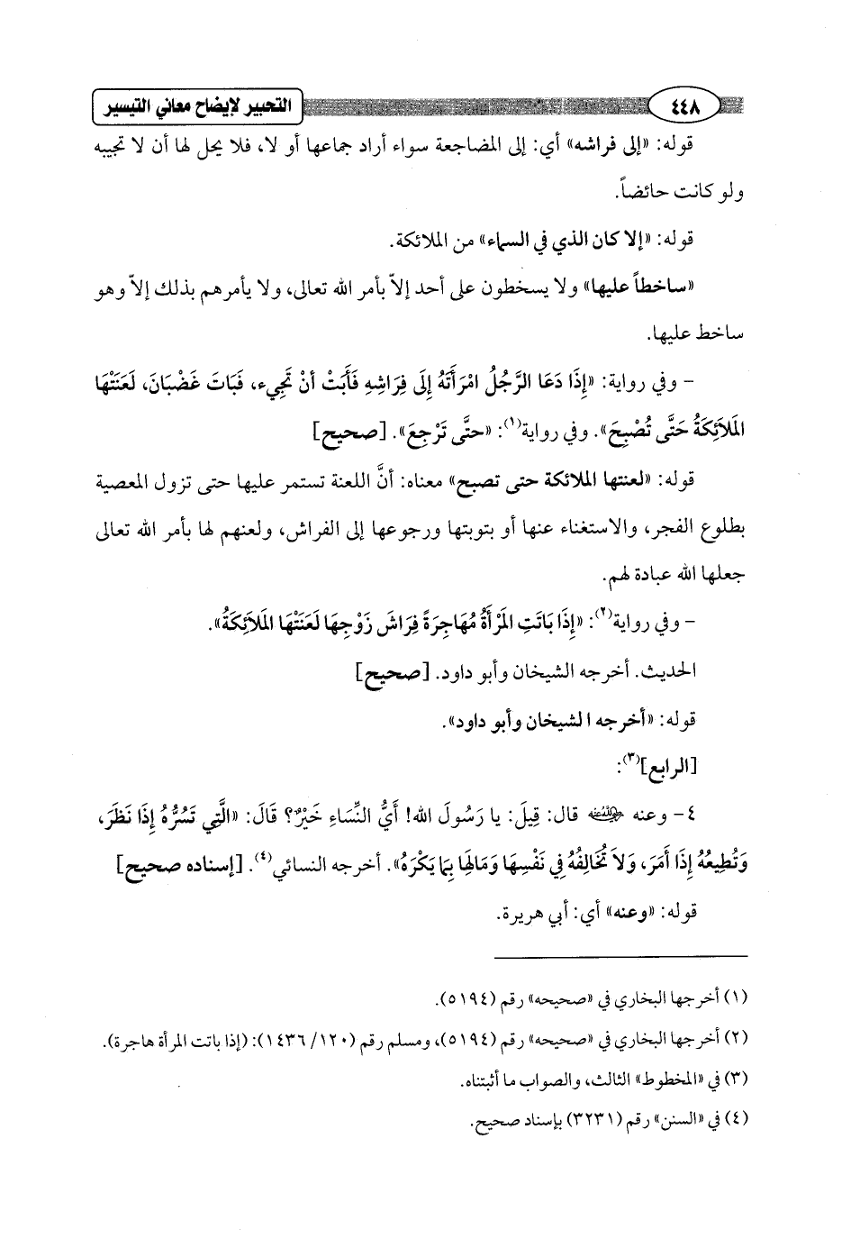 (¬2) أخرجها البخاري في "صحيحه" رقم (5194)، ومسلم رقم (120/ 1436): (إذا باتت المرأة هاجرة).