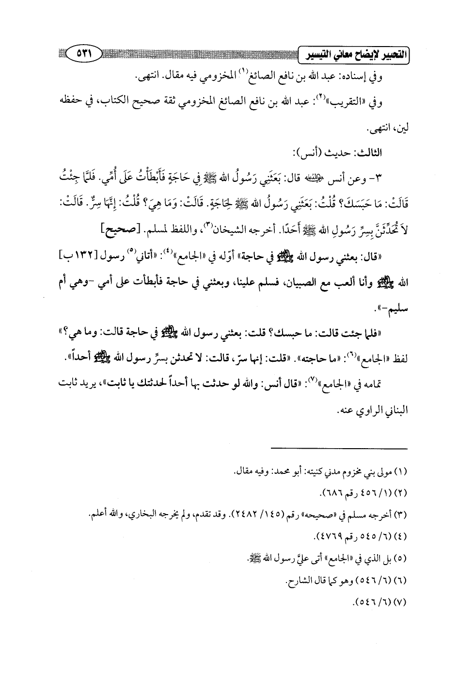 تمامه في "الجامع" (¬7): "قال أنس: والله لو حدثت بها أحداً لحدثتك يا ثابت"، يريد ثابت البناني الراوي عنه.