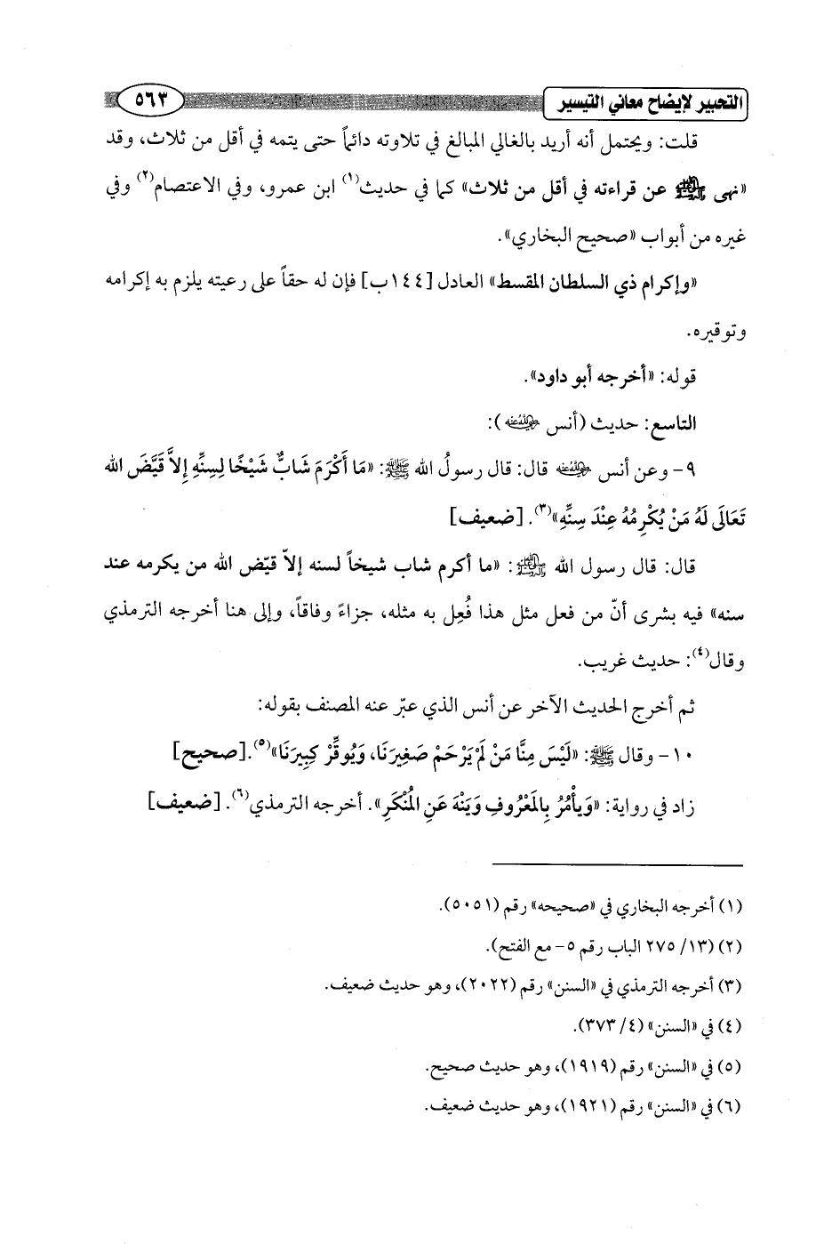 زاد في رواية: "وَيأْمُرُ بِالمَعْرُوفِ وَيَنْهَ عَنِ المُنْكَرِ". أخرجه الترمذي (¬6). [ضعيف]