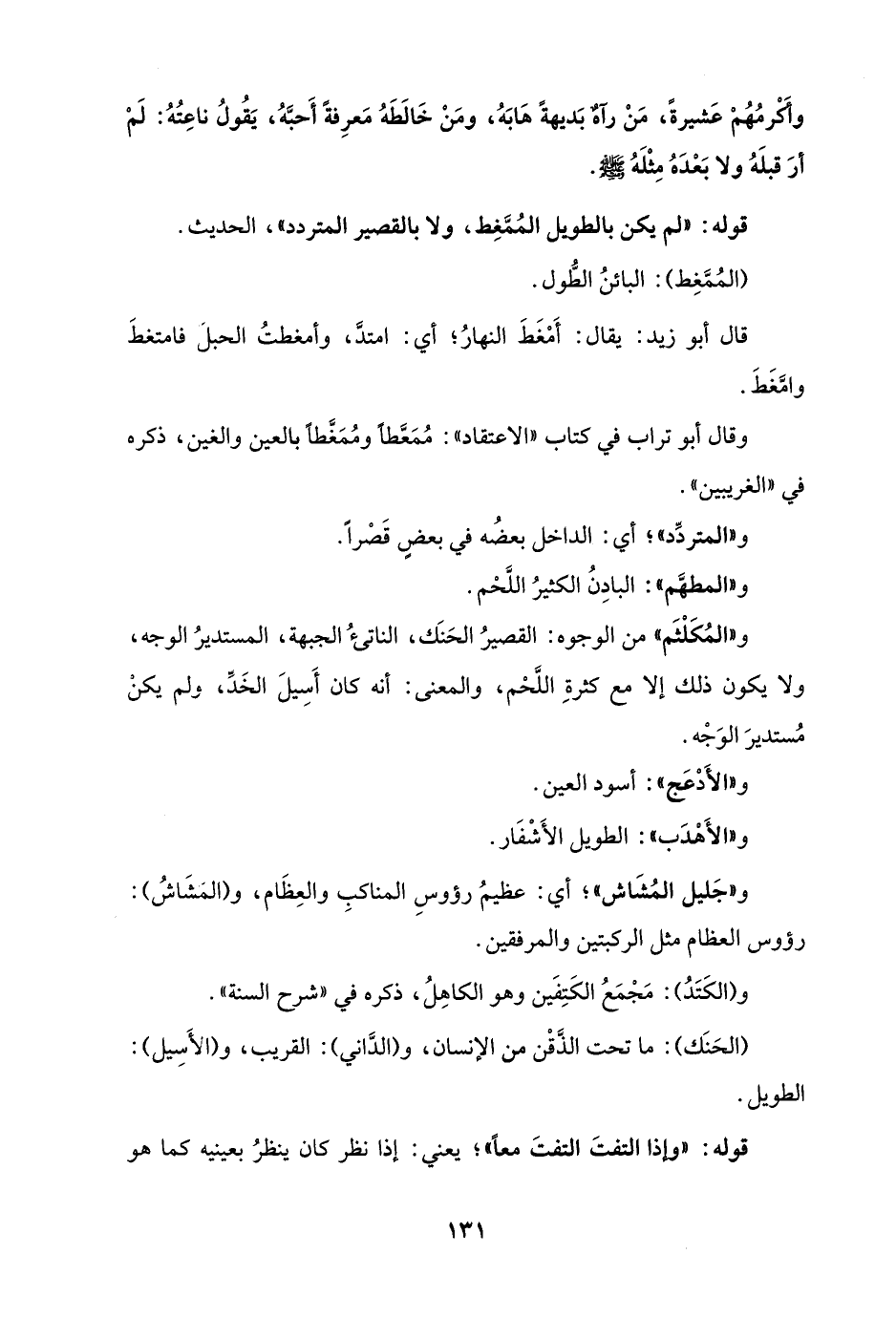 قوله: "لم يكن بالطويل المُمَّغِط، ولا بالقصير المتردد"، الحديث.