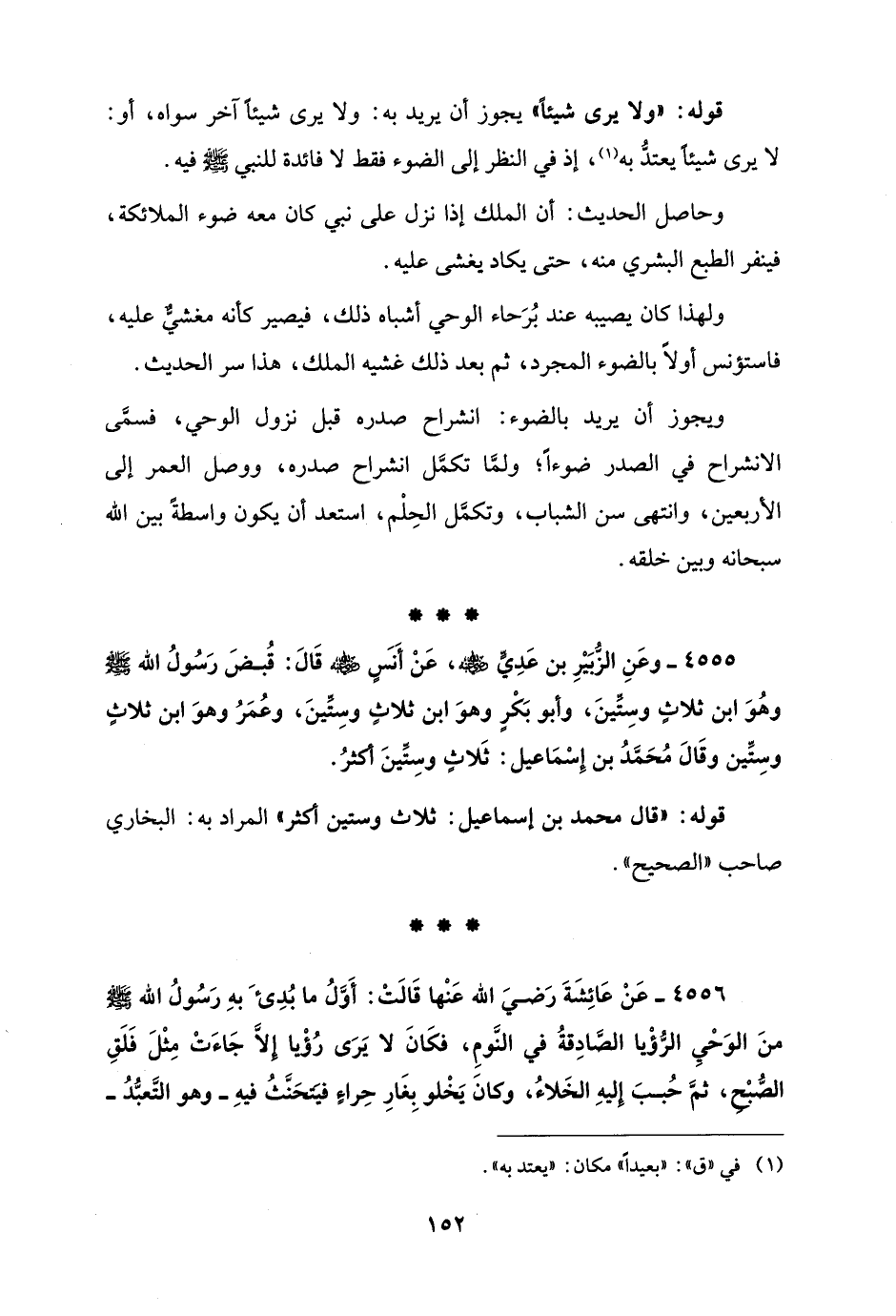 4555 - وعَنِ الزُّبَيْرِ بن عَدِيًّ - رضي الله عنه -، عَنْ أَنَسٍ - رضي الله عنه - قَالَ: قُبضَ رَسُولُ الله - صلى الله عليه وسلم - وهُوَ ابن ثلاثٍ وسِتَّينَ، وأبو بَكْرٍ وهوَ ابن ثلاثٍ وسِتَّينَ، وعُمَرُ وهوَ ابن ثلاثٍ وسِتِّين وقَالَ مُحَمَّدُ بن إِسْمَاعيل: ثَلاثٍ وسِتَّينَ أكثرُ.