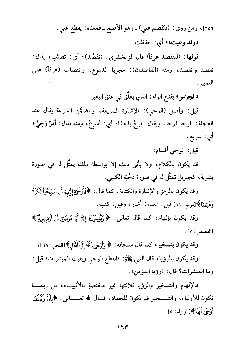 256]، ومن روى: (فيُفصم عني) - وهو الأصح - فمعناه: يقطع عني.