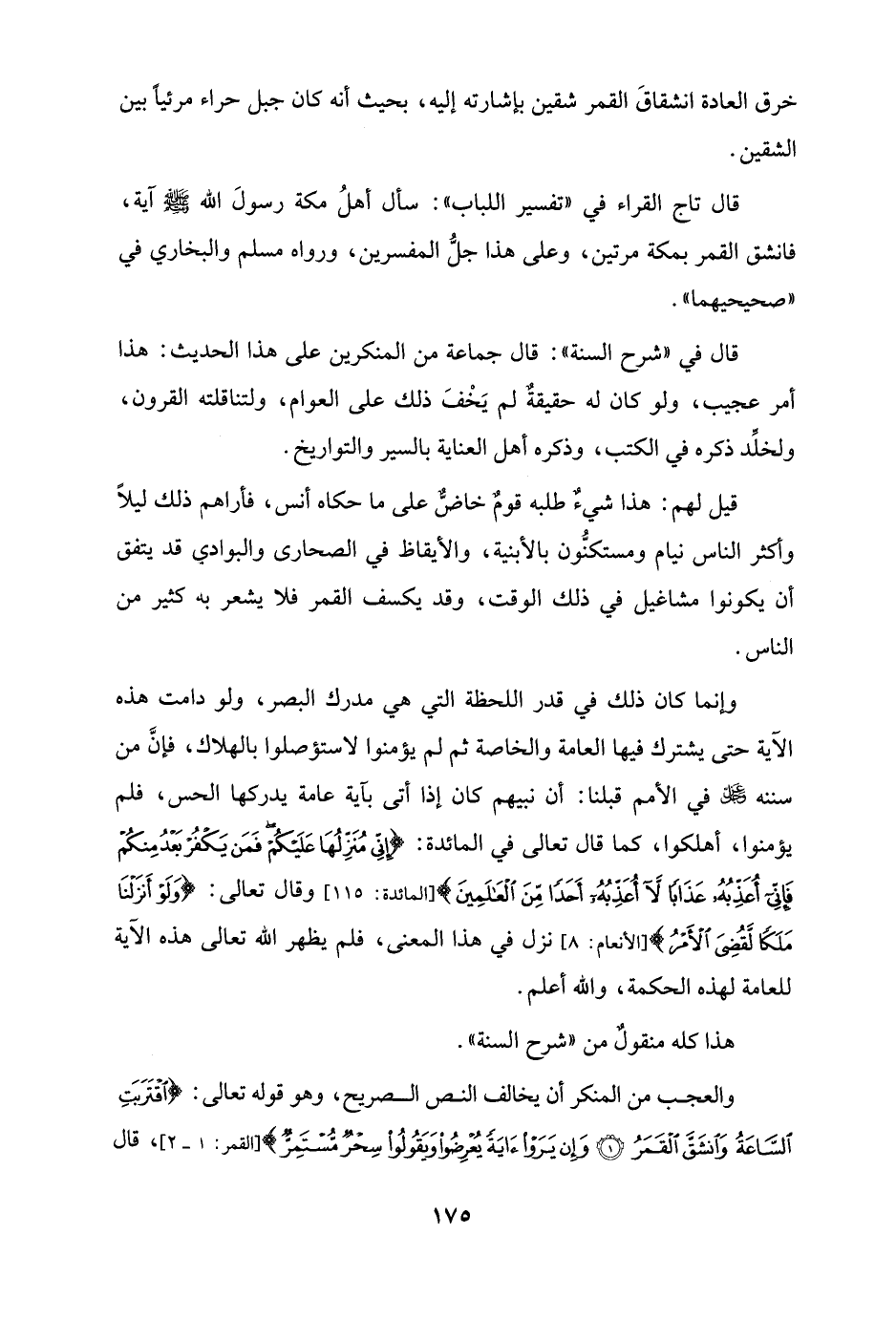 والعجب من المنكر أن يخالف النص الصريح، وهو قوله تعالى: {اقْتَرَبَتِ السَّاعَةُ وَانْشَقَّ الْقَمَرُ (1) وَإِنْ يَرَوْا آيَةً يُعْرِضُوا وَيَقُولُوا سِحْرٌ مُسْتَمِرٌّ} [القمر: 1، 2]، قال
