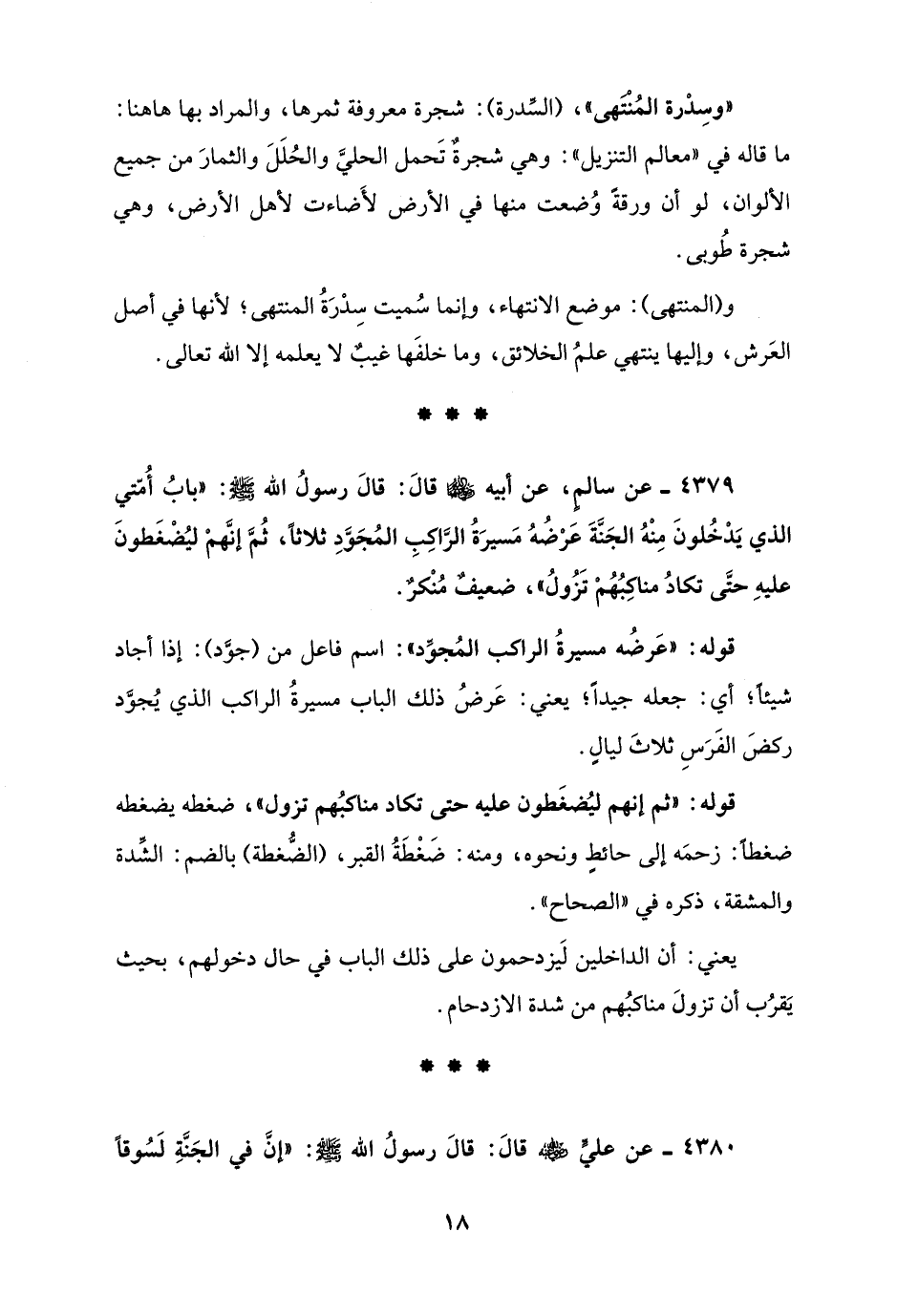 4379 - عن سالمٍ، عن أبيه - رضي الله عنهما - قالَ: قالَ رسولُ الله - صلى الله عليه وسلم -: "بابُ أُمّتي الذي يَدْخُلونَ مِنْهُ الجَنَّةَ عَرْضُهُ مَسيرَةُ الرَّاكِبِ المُجَوَّدِ ثلاثًا، ثُمَّ إنَّهمْ ليُضْغَطونَ عليهِ حتَّى تكادُ مناكبُهُمْ تَزُولُ"، ضعيفٌ مُنْكرٌ.