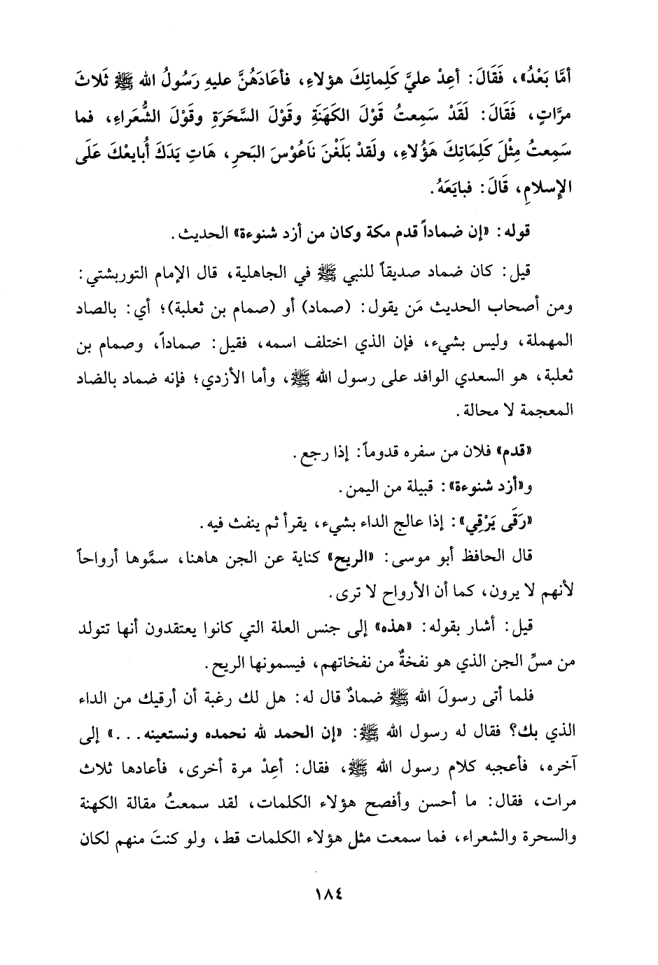 قوله: "إن ضمادًا قدم مكة وكان من أزد شنوءة" الحديث.