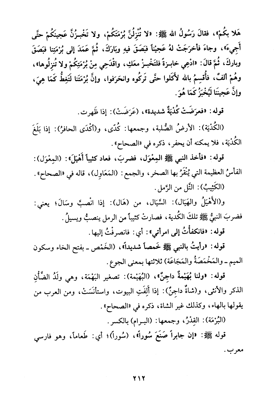 هَلا بكُمْ"، فقالَ رَسُولُ الله - صلى الله عليه وسلم -: "لا تُنْزِلُنَّ بُرْمَتَكُمْ، ولا تَخْبزُنَّ عَجينَكُمْ حتَّى أَجِيءَ"، وجاءَ فأخرَجَتْ لهُ عَجيْنًا فبَصَقَ فيهِ وبَارَكَ، ثُمَّ عَمَدَ إلى بُرْمَتِنا فبَصَقَ وباركَ، ثُمَّ قالَ: "ادْعِي خابزةً فلتَخْبزْ معَكِ، واقْدَحِي مِنْ بُرْمَتِكُمْ ولا تُنزِلُوها", وهُمْ ألفٌ، فأُقسِمُ بالله لأَكَلوا حتَّى تَركُوه وانحَرَفوا، وإنَّ بُرْمَتَنا لَتَغِطُّ كَمَا هِيَ، وإنَّ عَجيننَا لَيُخْبَزُ كَمَا هُوَ.