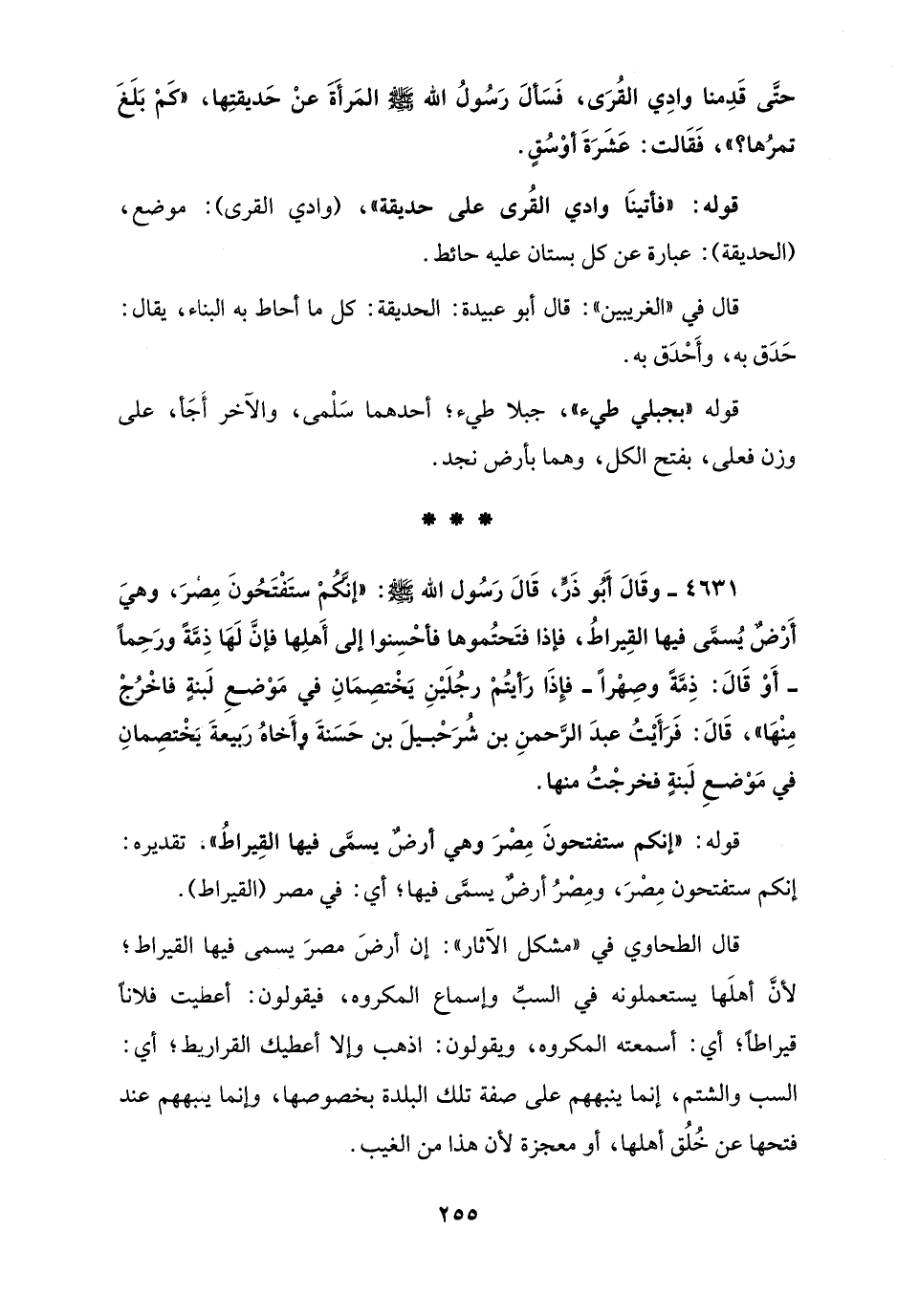 قوله: "فأتينَا وادي القُرى على حديقة"، (وادي القرى): موضع، (الحديقة): عبارة عن كل بستان عليه حائط.