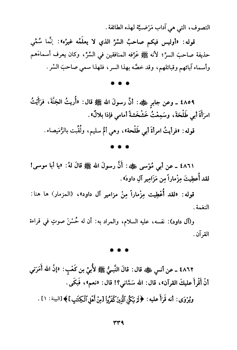 4861 - عن أبي مُوْسى - رضي الله عنه -: أَنَّ رسولَ الله - صلى الله عليه وسلم - قالَ لهُ: "يا أبا موسى! لقد أُعطِيتَ مِزْمارًا مِن مَزَامِير آلِ داودَ".