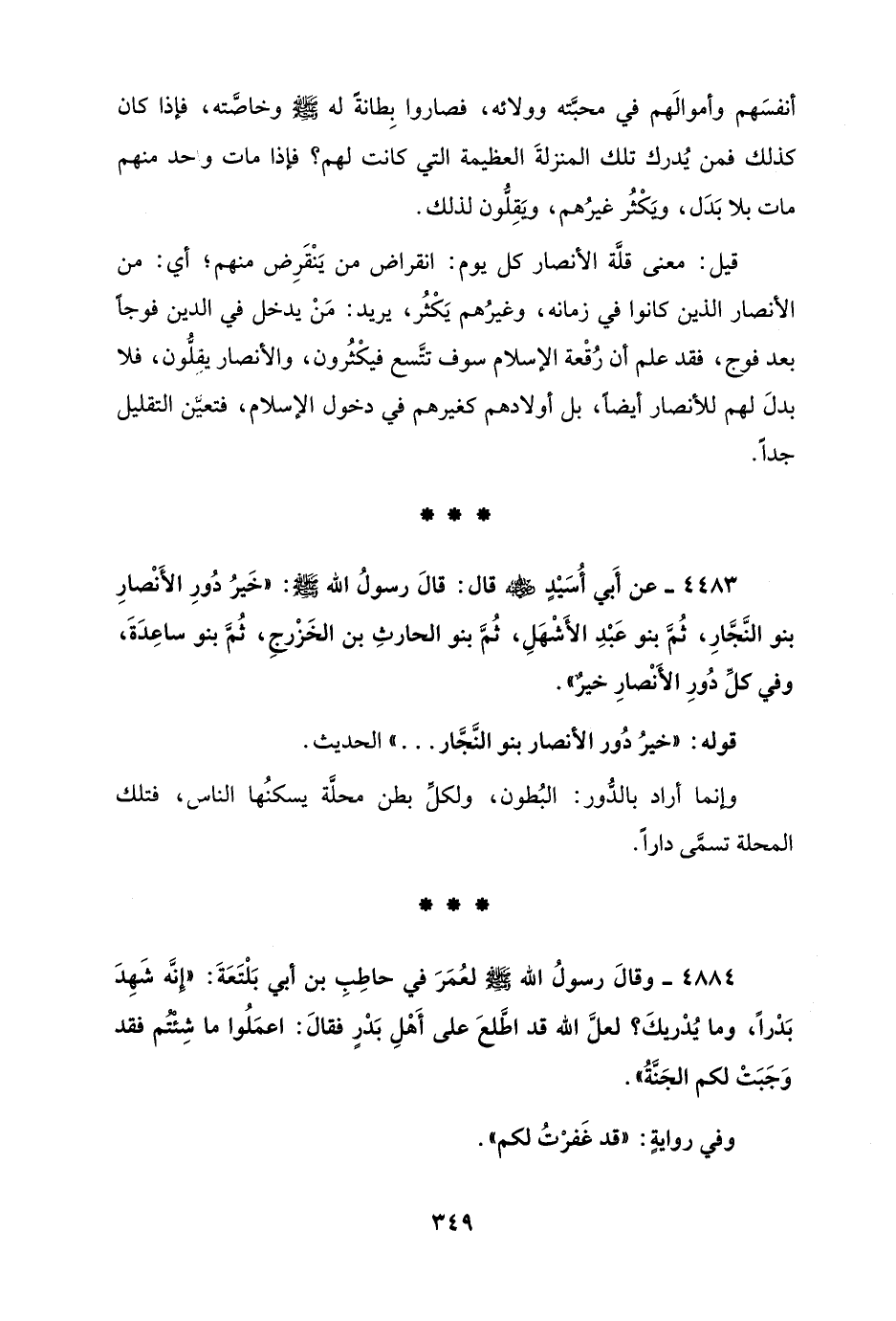 4483 - عن أَبي أُسَيْدٍ - رضي الله عنه - قال: قالَ رسولُ الله - صلى الله عليه وسلم -: "خَيرُ دُورِ الأَنْصارِ بنو النَّجَّارِ، ثُمَّ بنو عَبْدِ الأَشْهَلِ، ثُمَّ بنو الحارثِ بن الخَزْرجِ، ثُمَّ بنو ساعِدَةَ، وفي كلِّ دُورِ الأَنْصارِ خيرٌ".