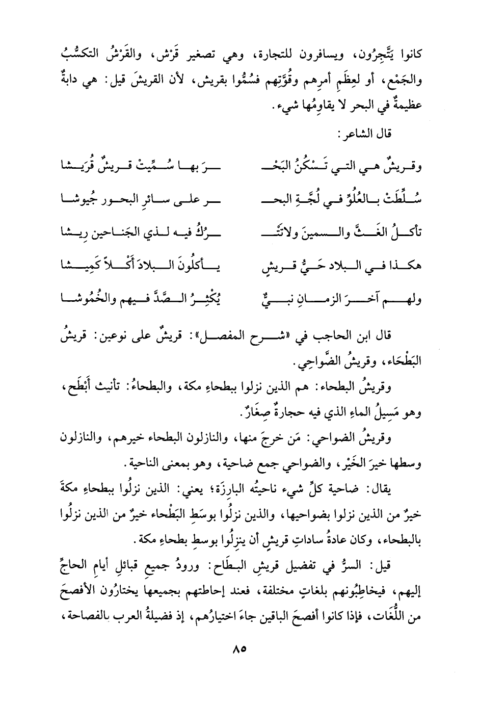 وقريشٌ هي التي تَسْكُنُ البَحْـ ... ــرَ بها سُمِّيتْ قريشٌ قُرَيشًا