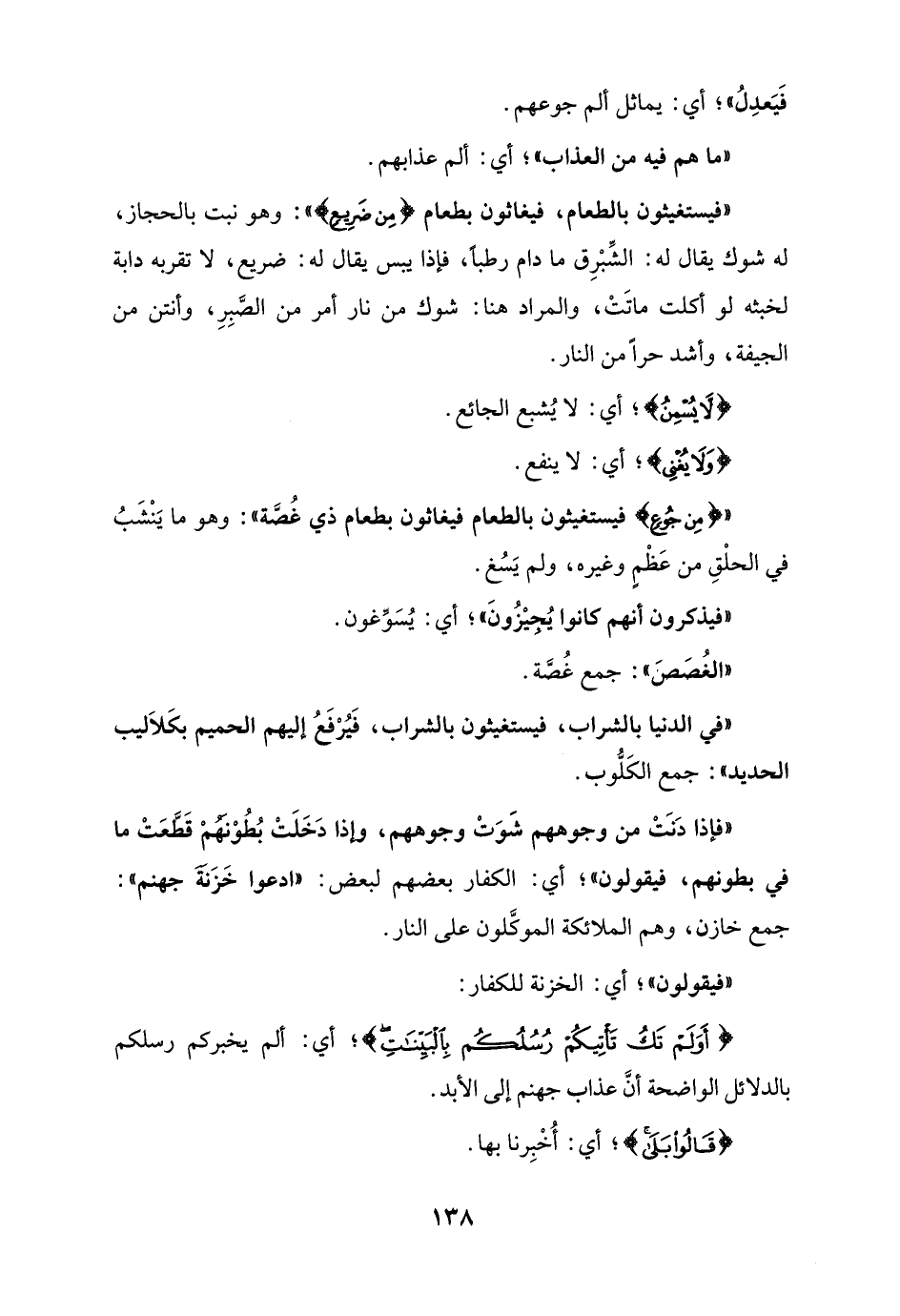 " {مِنْ جُوعٍ} فيستغيثون بالطعام فيغاثون بطعام ذي غُصَّة ": وهو ما يَنْشَبُ في الحلْقِ من عَظْمٍ وغيره، ولم يَسُغ.